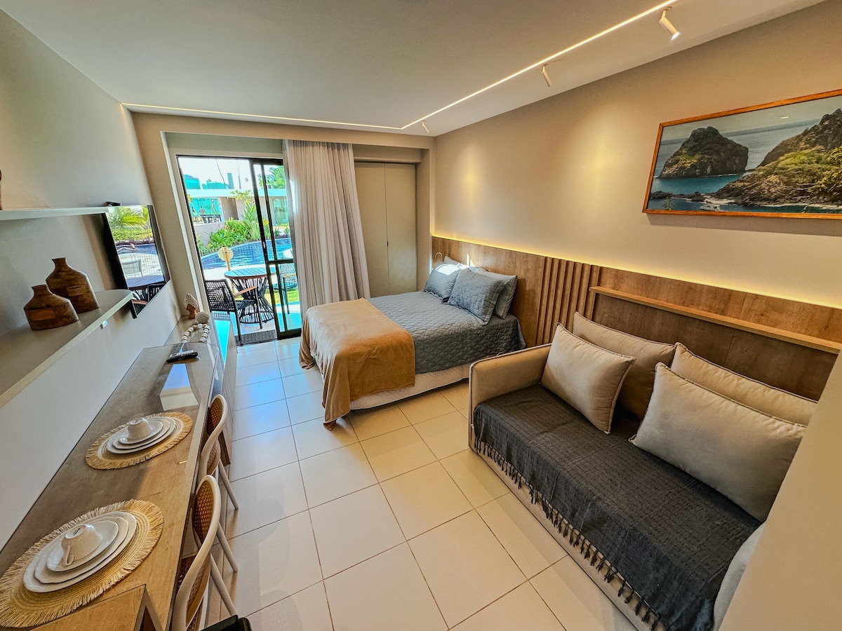 Pilnas ir PUIKIAI dekoruotas butas, esantis Green Porto kondominiume, Porto de Galinhas centre, už kelių metrų nuo natūralių baseinų, garsiosios skėčių gatvės ir geriausių restoranų bei parduotuvių. Butas 100% įrengtas, su trousė, standartinio dydžio lova, sofa-lova, oro kondicionieriumi, smarTV, šaldytuvu, virykle, orkaite, mikrobangų krosnele ir dar daugiau! Pastate yra žaidimų aikštelė,stogas su kepsnine ir baseinu su vaizdu į natūralius baseinus. Patirkite viešnagės Porte patirtį!