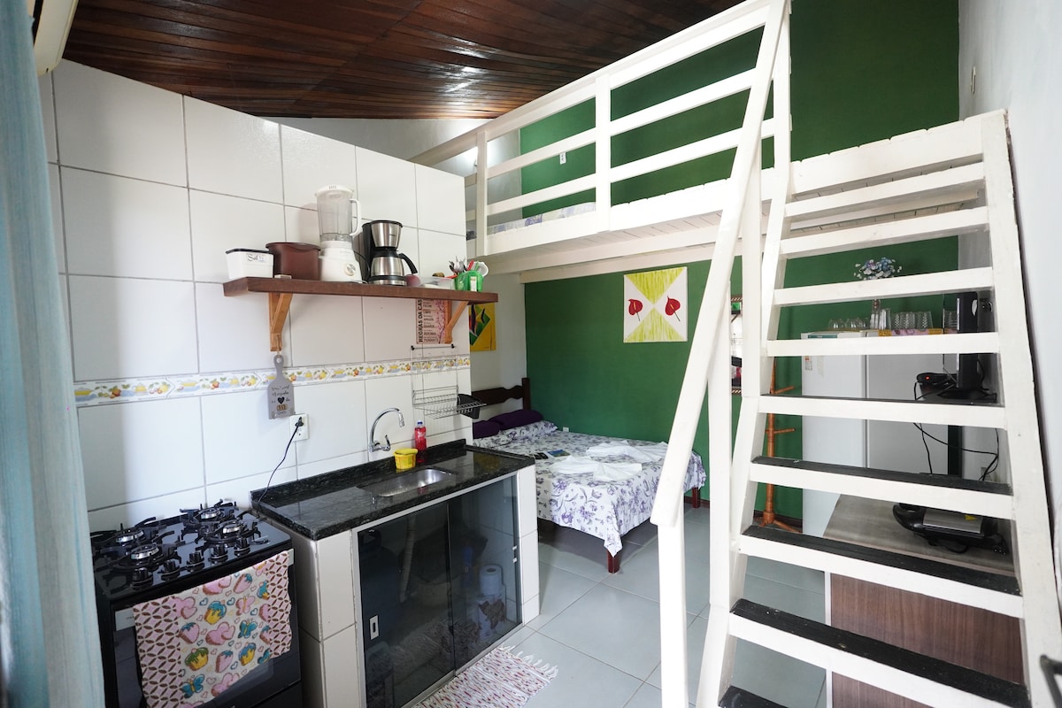 Patirkite Ilha Grande žavesį šiame jaukiame poilsio namelyje, vos už 4 min. kelio pėsčiomis nuo pagrindinės prieplaukos! Įsikūręs apatinėje Abraão dalyje, jis siūlo lengvą prieigą prie barų, restoranų ir kelionių agentūrų. Tai puiki vieta atsipalaiduoti privačiame kondominiume su vaismedžiais ir gražiu bendru sodu. Poilsio namelyje yra 13 m² vidaus erdvė ir 6 m² privatus balkonas su stalu, kėde ir hamaku. Jame taip pat yra privati virtuvėlė ir vonios kambarys. Idealus poilsis patogumui ir patogumui!