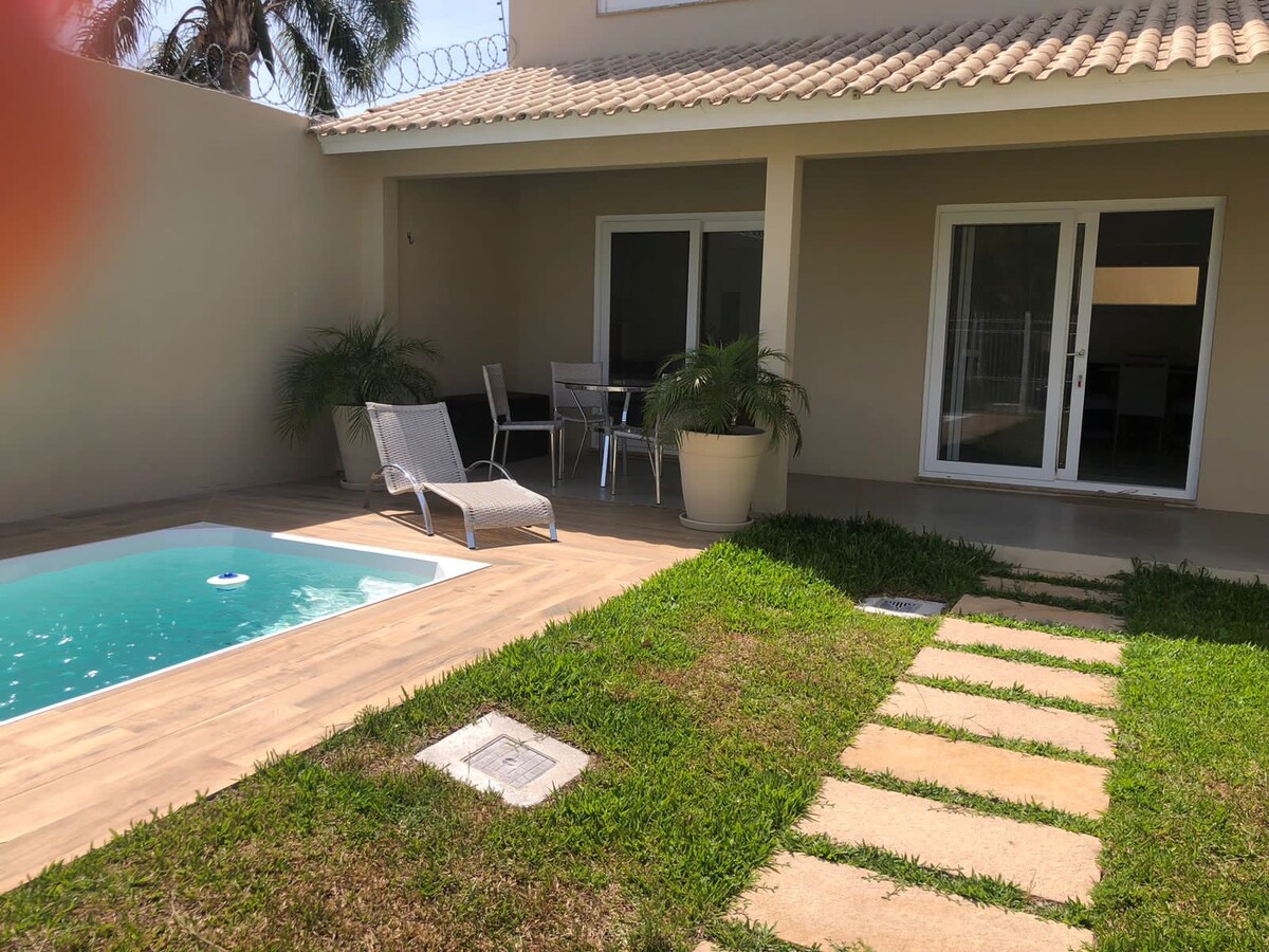 Casa nova com excelente localização, meia quadra da avenida principal! Churrasqueira, piscina, ar condicionado em todos quartos, lugar para 2 carros.