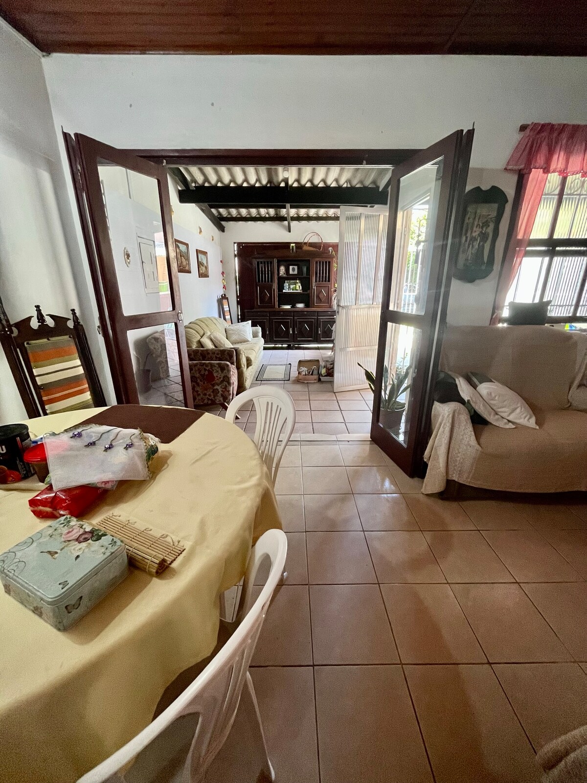 2 aukštų namas, netoli paplūdimio! Privati automobilių stovėjimo aikštelė 3 automobiliams. Namas su 2 virtuvėmis, viena vidinėje erdvėje ir viena išorėje, su kepsnine, atramine kriaukle, stalu ir sėdimomis vietomis. Name yra 3 miegamieji, 2 pirmame aukšte ir vienas antrame. Turime papildomą čiužinį! Kambarys ir pagrindinė virtuvė antrame aukšte, gerai įrengta. Norėdami mėgautis paplūdimiu, turime šiluminę dėžutę ir paplūdimio kėdes! Galimi iešmai, rankšluosčiai ir patalynė! Užsisakykite! :D