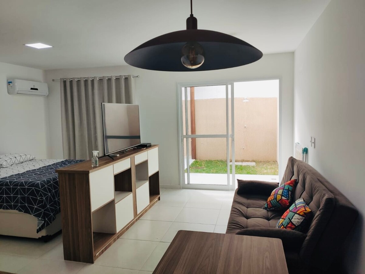 Puikus butas Geribá Búzios, už penkių minučių kelio nuo paplūdimio.🏖️ Netoli garsaus Fishibone restorano ir Porto da Barra, gerai žinomo Búzios. Condomínio Geribá Apart Hotel Internacional. Kondominiume yra: baseinas, žaidimų kambarys, pirtis, automobilių stovėjimo aikštelė, valymo paslaugos, kambarinės, patalynės keitimas, vonios ir higienos priemonės. Išskirtinis butas kondominiume, kuriame yra skalbyklė ir džiovyklė, butas su skalbykle ir džiovykle. Svetainėje ir miegamuosiuose taip pat yra padalytas oro kondicionierius!