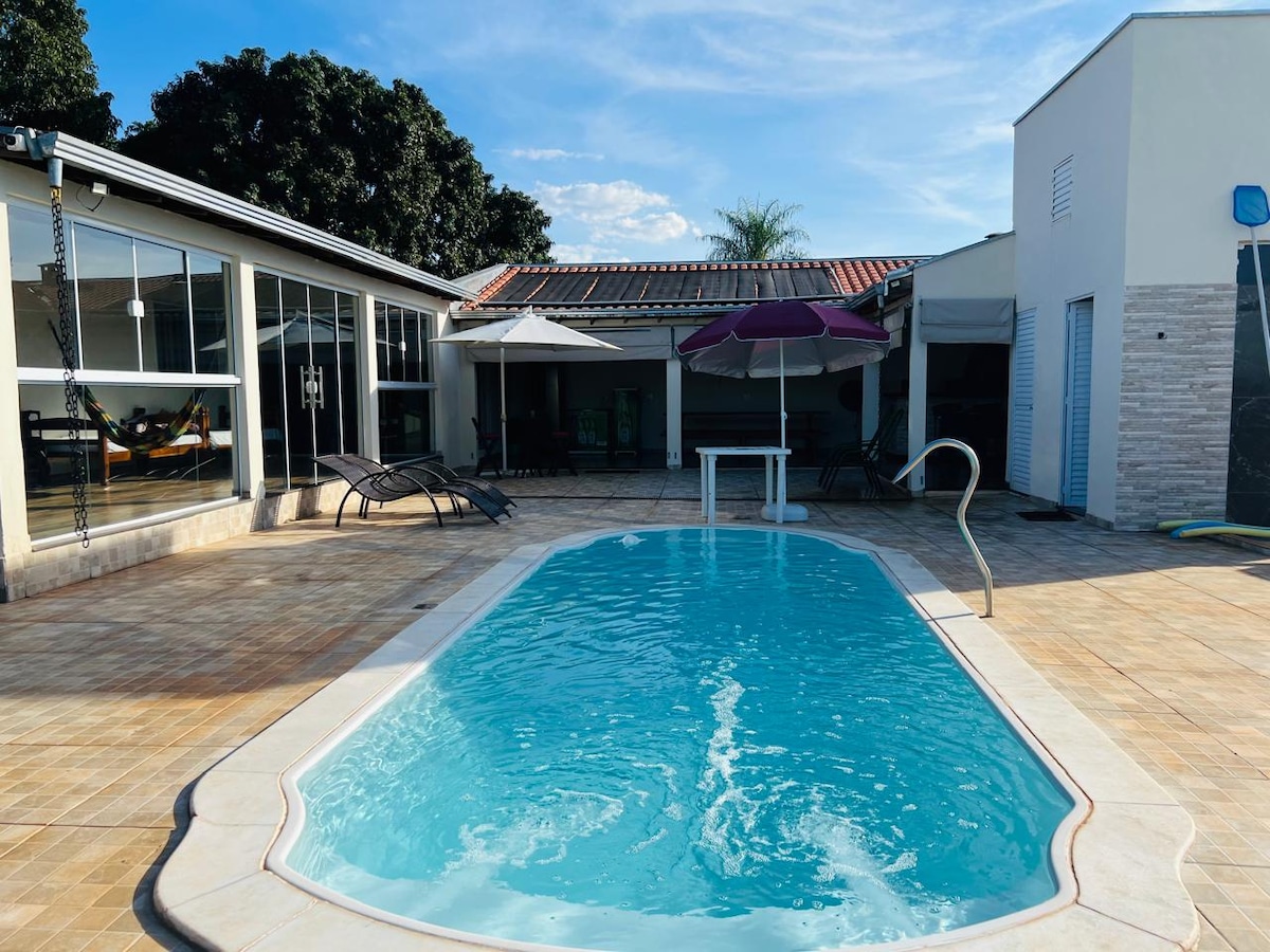 Erdvus dviejų lovų kambarys „Chacara“ su lauko kepsnine ir dideliu baseinu, todėl puikiai tinka ir šeimos atostogoms, ir socialiniams susibūrimams.