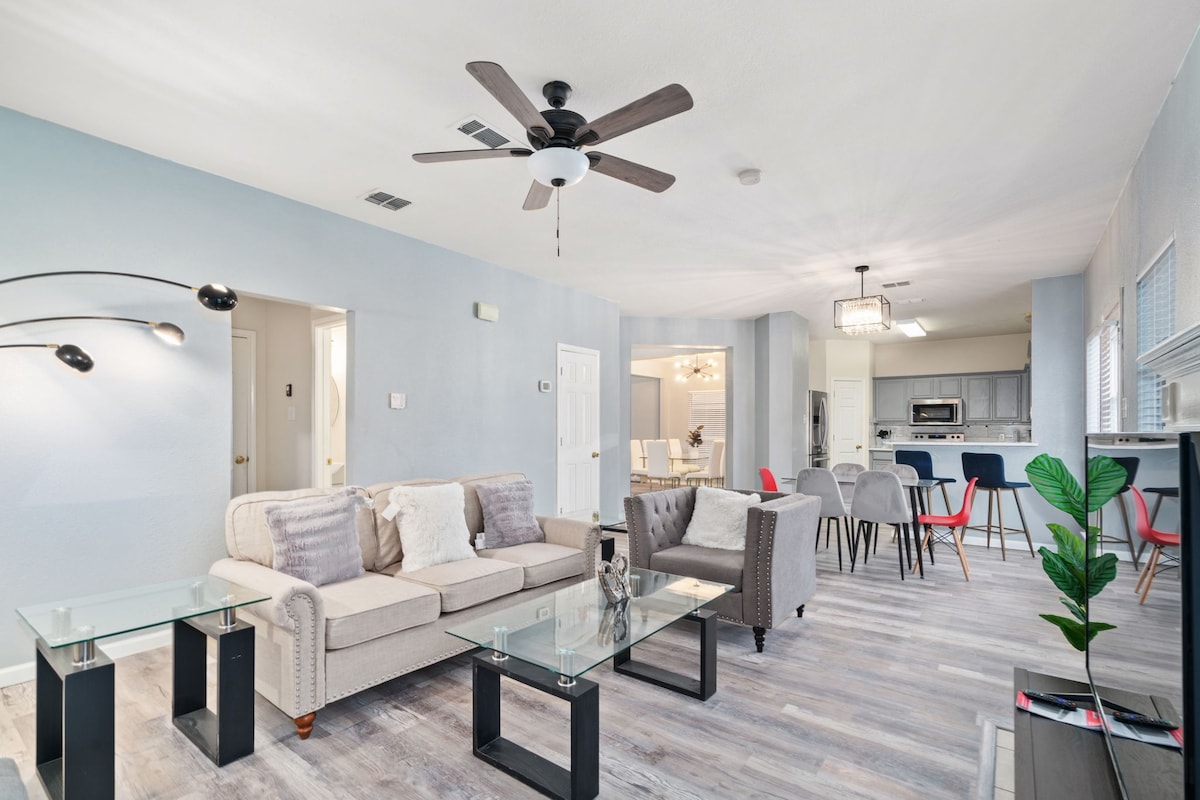 Mėgaukitės prabanga šiuose stilinguose 4BR namuose, esančiuose vos už 1,3 mylių nuo McKinney centro. Atsipalaiduokite prabangiuose pagrindiniuose apartamentuose su karališka lova ir elegantišku dizainu. Jaukiai įsitaisykite erdvioje svetainėje su židiniu. Namuose yra išmanieji televizoriai, pilnai įrengta virtuvė ir skalbykla. Lauke terasoje yra kepsninė, laužavietė, lauko žaidimai ir patogios sėdimos vietos. GOLFO VEŽIMĖLIŲ NUOMA JAU GALIMA!!!