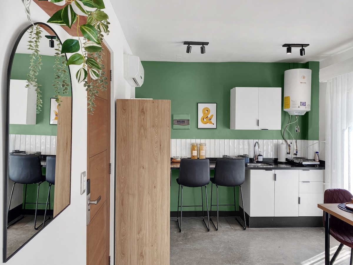 Išskirtinis studijos tipo butas geriausioje Santjago vietoje! Loftas yra ketvirtame aukšte ir pasiekiamas liftu. Jame yra elektrinė orkaitė, stalviršis, šaldytuvas ir mikrobangų krosnelė. Atsigulkite patogioje karališkoje lovoje ir mėgaukitės filmais HD televizoriuje, kol klausotės paukščių, dainuojančių ant medžių viršūnių, žiūrinčių į jūsų langą.