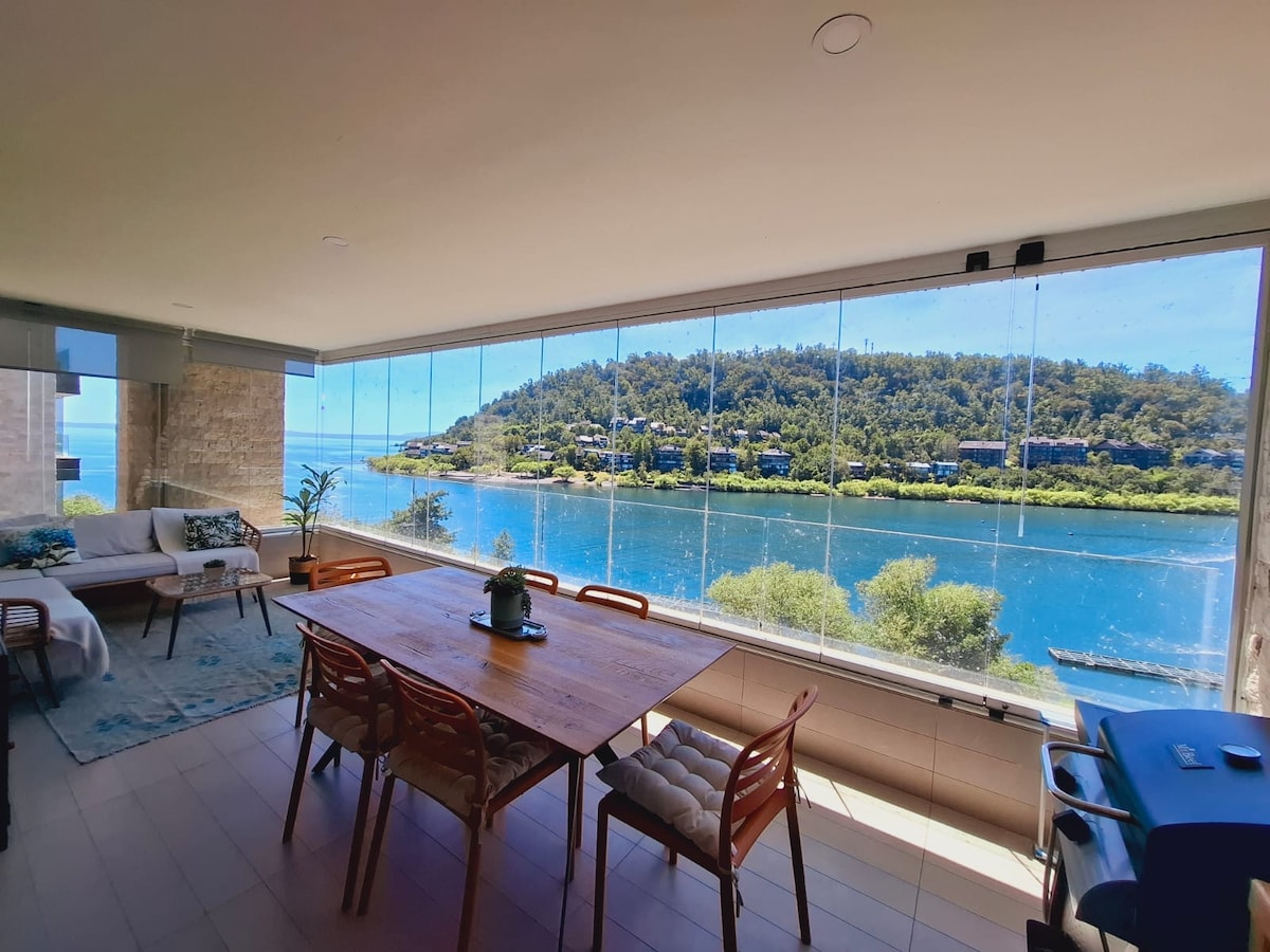 Departamento con vista directa al lago y al volcán, ideal para disfrutar en familia un entorno natural y privilegiado. Frente al lago y con acceso directo. El condominio cuenta con club Hause (sala de cine, sala de juegos para niños, jacuzzi, sauna, GYM, mesa de Pool, entre muchas otras cosas) canchas de tenis, piscina, restaurante y mucho más! Solo a 3 min en auto al centro de la ciudad.