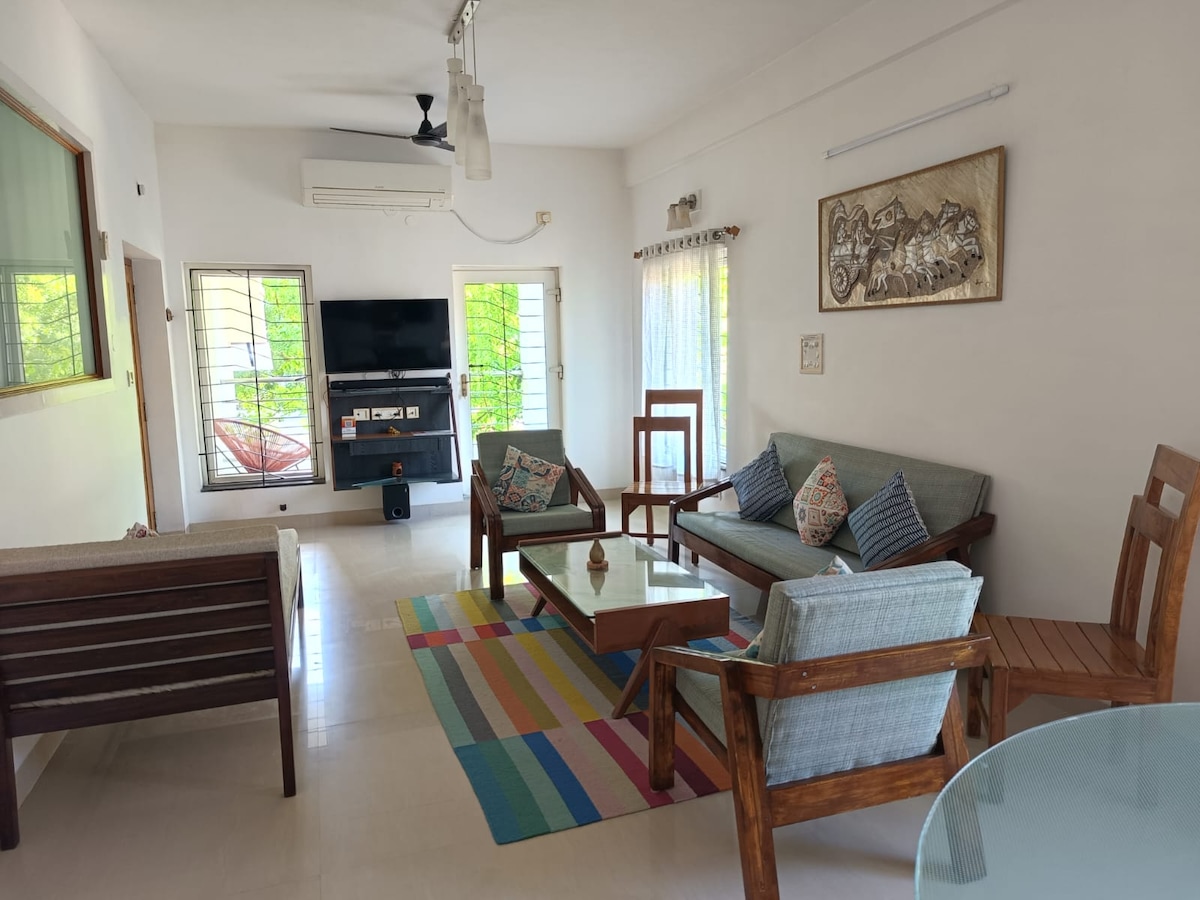 • 🏢 1BHK | 600 kv. pėdų – draugiškas WFH • 🛏️ Jaukias medvilnines lovas *Puikiai tinka ilgoms viešnagėms • 🍳 Pilnai įrengta virtuvė sveikam maistui • 📍 Tyli Anjanapura – puikiai tinka sutelkti dėmesį • 💼 Puikiai tinka verslo persikėlimams • Įskaičiuotas 🧹 savaitinis valymas • 🧾 Pagalba dėl atsiskaitymo ir nuolaidos viešnagei • 🔄 Lankstus atvykimas/išvykimas • 🚶 Saugu vakariniams pasivaikščiojimams • 🙋 Greita pagalba šeimininkams (10.00-19.00 val.) *Šaldytuvas ir skalbimo mašina jūsų patogumui *Nėra bendrų erdvių. *Automobilių stovėjimo aikštelė patalpose *Puikiai tinka poroms/mažoms šeimoms ir augintinių savininkams