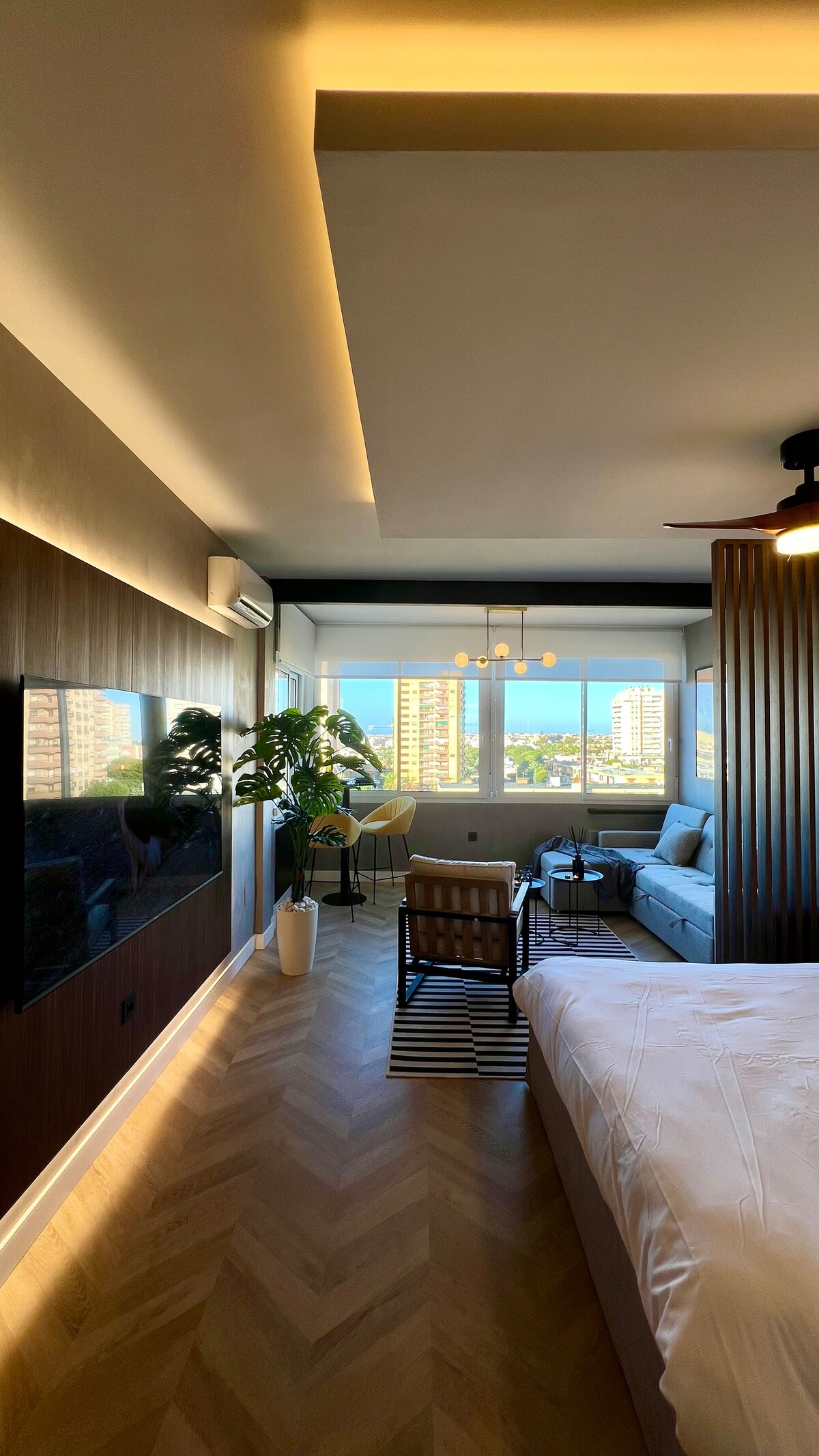 Neseniai renovuotas ir pilnai įrengtas šis dizainerių loftas yra vos už 200 metrų nuo paplūdimio. Iš plačių langų atsiveria kvapą gniaužiantys jūros ir miesto vaizdai, o puiki vieta yra netoli laisvalaikio zonos ir visų patogumų. Šis butas su elegantišku dizainu ir visais reikalingais patogumais siūlo puikų derinį nepamirštamoms atostogoms prie jūros.