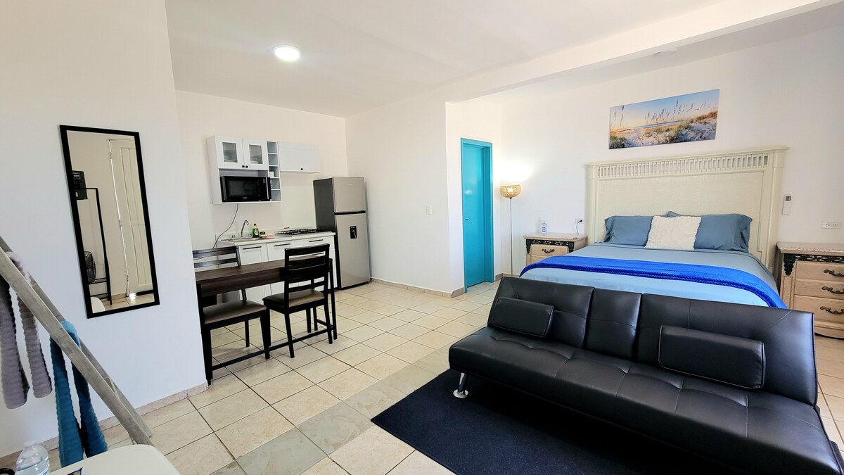 Welcome to our studio, a fully functional place for your comfort! Warm and cozy, perfect for resting, located in an apartment building on a main avenue, a mini grocery store across the street, beer, provisions, etc. and fast food places just a few steps away. Location that will allow you to easily reach all the attractions that Puerto Peñasco has to offer our visitors. You will have no problems finding your way or getting where you want to go.