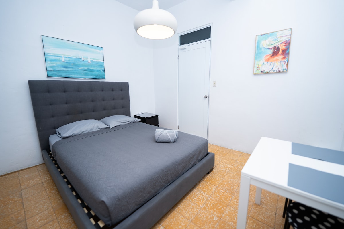 Pabėkite į romantišką antžeminio lygio privatų apartamentą su pliušine karališko dydžio gelio atminties putplasčio lova ir mirkymo vonia. Trumpas pasivaikščiojimas iki Ocean Park paplūdimio ir energingo naktinio gyvenimo Calle Loiza. Atsipalaiduokite ir atsipalaiduokite naudodamiesi bendrais patogumais, skirtais jūsų patogumui ir malonumui. ✨ Karališko dydžio gelio atminties putplasčio lova ✨ Mirkymo vonia ir privati vonia ✨ Bendra virtuvė ir svetainė ✨ Baseino zona ir lauko dušai ✨ Lauko pavėsinė su kepsnine ir biliardo stalu ✨ Apsaugota bendruomenė netoli paplūdimio ir restoranų