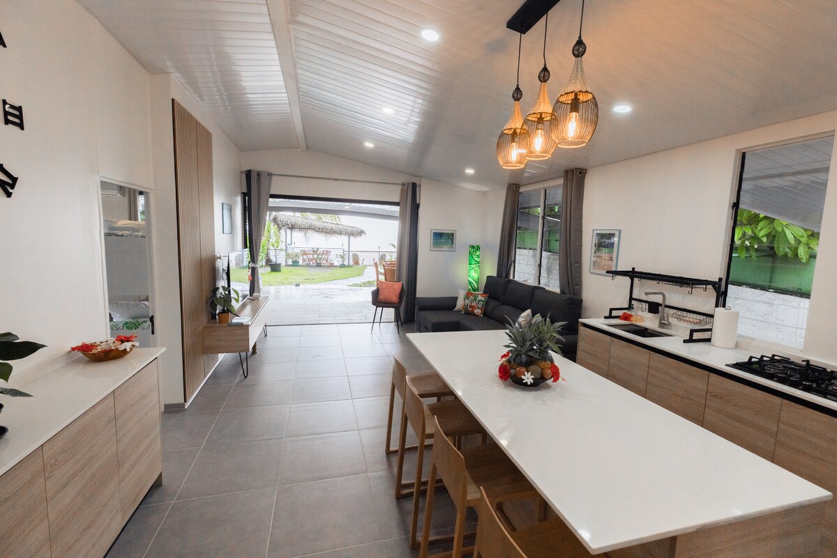 Iš mūsų žavingo 85 m ² namo ir jo 22 m² terasos atsiveria kvapą gniaužiantis vaizdas į nuostabią Moorea salą. Galite atsipalaiduoti patogiose erdvėse ir turėti galimybę dirbti dėl motorizuoto rašomojo stalo ir antrojo ekrano, kad galėtumėte rodyti du kartus su nešiojamuoju kompiuteriu. Geras interneto ryšys leis palaikyti ryšį su savo darbu. Ateikite ir patirkite unikalią patirtį šiuose namuose, kuriuose komfortas ir atostogos eina po ranka.