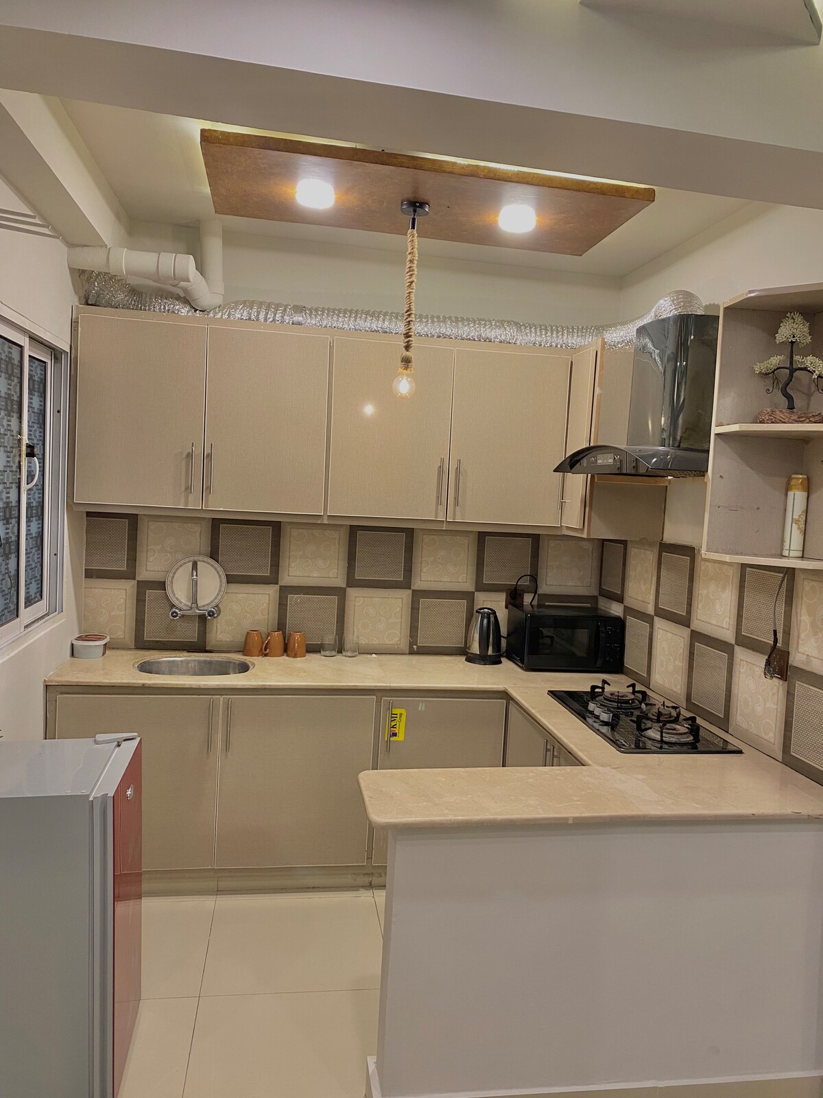 ➤ Sveiki atvykę į mūsų elegantišką vieno miegamojo butą, įsikūrusį pačioje Islamabado širdyje. ➤ Puikiai tinka poroms ir šeimoms, pavieniams keliautojams ar verslo specialistams – ramūs, saugūs ir išskirtiniai. ➤ Šiuolaikinis interjeras: erdvus miegamasis, aptaki virtuvė, jauki svetainė. ➤ Pastate yra kavos pupelių ir kraštų – vakarienė vietoje arba išsinešimui! ➤ Patogumai: kūno rengybos centras, sodas ant stogo, apsauga visą parą. ➤ Tinka šeimoms, centre – viskas prie jūsų durų slenksčio.