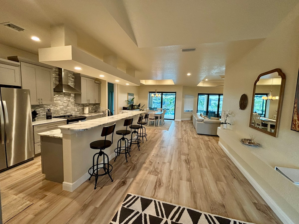 Norite maudytis, atsipalaiduoti lauke, žvejoti ir pasimėgauti gražiais saulėlydžiais plačiame įlankos kanale? Jei taip, įsimylėsite šį nuostabų naujai pastatytą namą! 2750 kvadratinių pėdų namai yra šviesūs ir erdvūs, juose yra du pagrindiniai miegamieji apartamentai ir atskiras šeimos sparnas! Gurmaniška virtuvė, valgomasis ir puikus kambarys, atviras dideliais slankikliais iki lanų ir baseino su vaizdu į kanalą labai pageidaujamame SW kyšulyje! Paplūdimio įkvėpta vila! Dideli kapitonai pėsčiomis ir Tiki! Peržiūrėkite mūsų atsiliepimus!