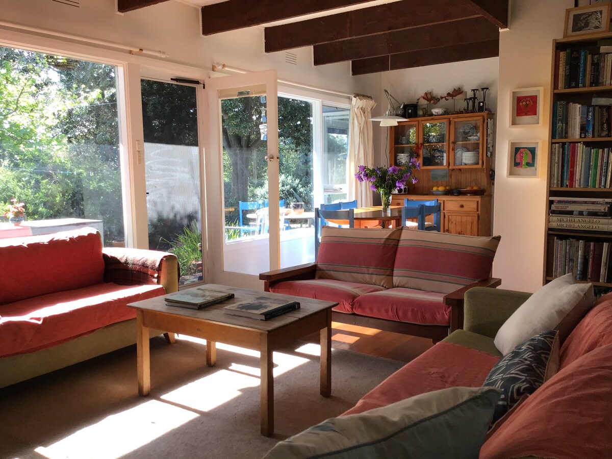 Klasikinis paplūdimio namas puikioje vietoje. Priešais esantis paplūdimys puikiai tinka vaikams ir šunims, todėl atsivežkite juos abu. Pasivaikščiokite šunų paplūdimiu iki Kvinslifo arba pajūrio bulvaro iki Point Lonsdale. Galbūt norėtumėte pasivaikščioti po „Įsimylėjėlių pasivaikščiojimo“ apylinkes arba sekti Gulbių įlankos pakrantėmis. Plaukdami ar nardydami ieškokite delfinų, o tada nuskalaukite lauko duše. Mėgaukitės kepsnine, kol vaikai ir šuo tyrinėja saugų kiemą. Pabaikite dieną lauko vonioje po žvaigždėmis, klausydamiesi vandenyno.