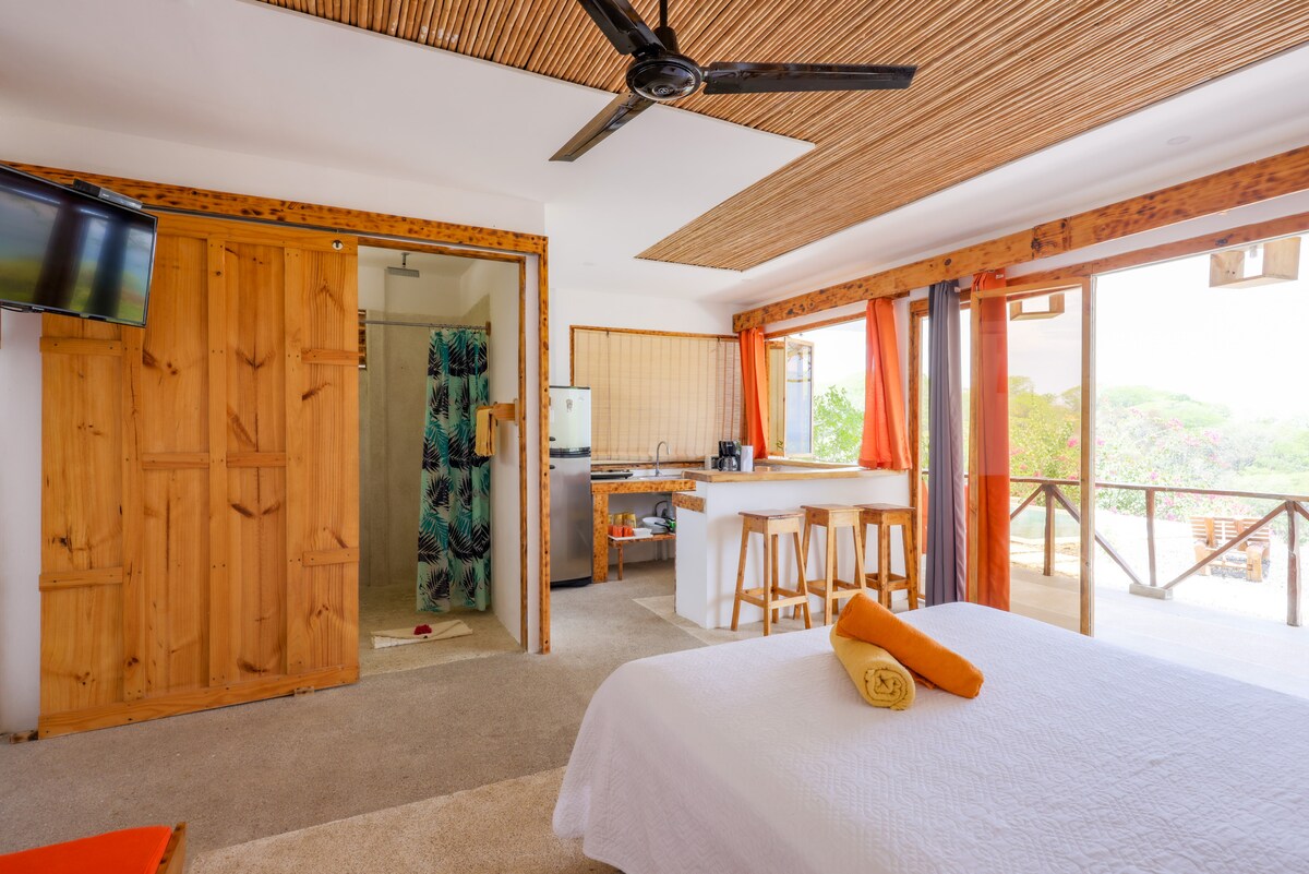 Casa Blue Rock Pirmo aukšto butas, pagamintas su meile, daugiausia dėmesio skiriant detalėms , su moderniu skoniu ir švariu, minimalistiniu, šviesos stiliumi. Erdvi svetainė su trimis čiužiniais, TV su kabeline internetu 10 megų su WI FI , virtuvė su 5 vietų stalu, privatus vonios kambarys su dušo skydeliu su masažo reikmenimis. Privatus miegamasis, kuriame iš grindų išeina garsioji mėlyna uola su karališko dydžio lova. A/C ir du didžiuliai langai su vaizdu į atogrąžų miškus
