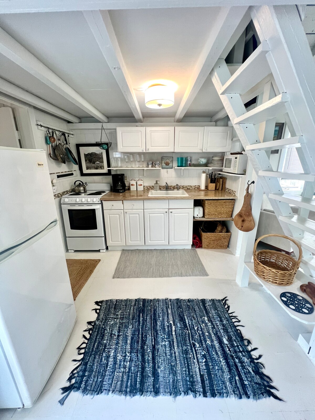 Mums patiko viskas, kas susiję su jūra... mano šeima pastatė šį ypatingą menininko loftą. Bėgant metams, šeima ir svečiai čia sukūrė gražių prisiminimų. Kotedže yra didelis aptvertas kiemas ir terasa. Viduje yra atviras išplanavimas, šviesu ir erdvu. Jis labai švarus ir kruopščiai suprojektuotas. Svetainės zonoje yra sofa-lova su laiptais į palėpę, kurioje yra platforma-lova ir maža dvigulė lovelė. Virtuvė pilnai įrengta, yra pilna vonia ir skalbimo mašina. 1 mylia iki pagrindinės gatvės / 1,5 mylios iki paplūdimių.