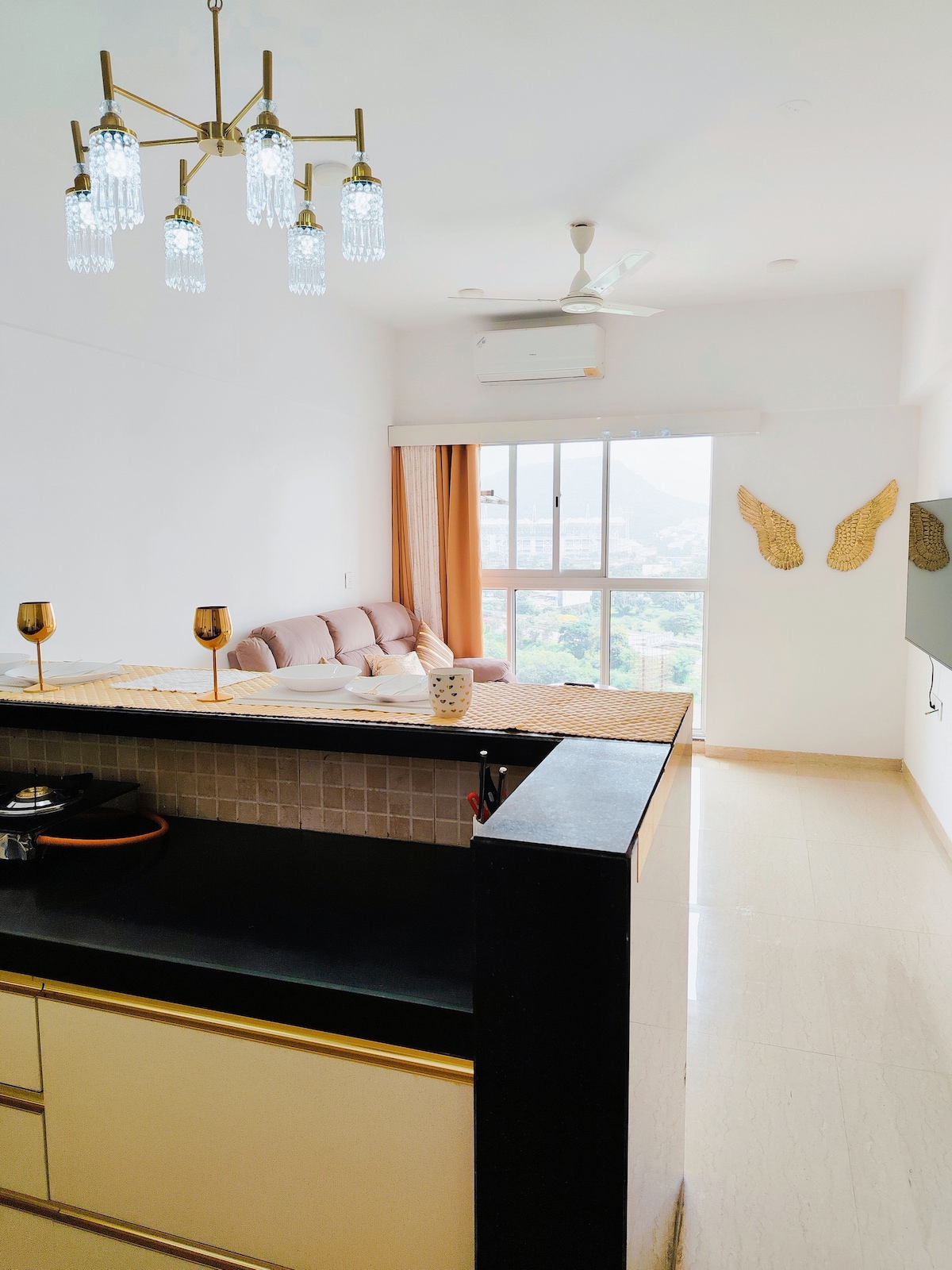 Mėgaukitės puikiu prabangos ir komforto deriniu šiame gražiai erdviame 2 miegamųjų bute. Butas, idealiai tinkantis verslo keliautojams ir BKC lankytojams, siūlo ramią atmosferą su gražiais medžiais apaugusiais vaizdais iš kiekvieno lango – jūsų ramus poilsis mieste, kuris niekada nemiega. Šis šiuolaikinis rojus, esantis centre, žada atpalaiduojančią aplinką, kol tyrinėjate Mumbajų. Butas yra: - 8 minutės iki vietinio ir tarptautinio oro uosto.