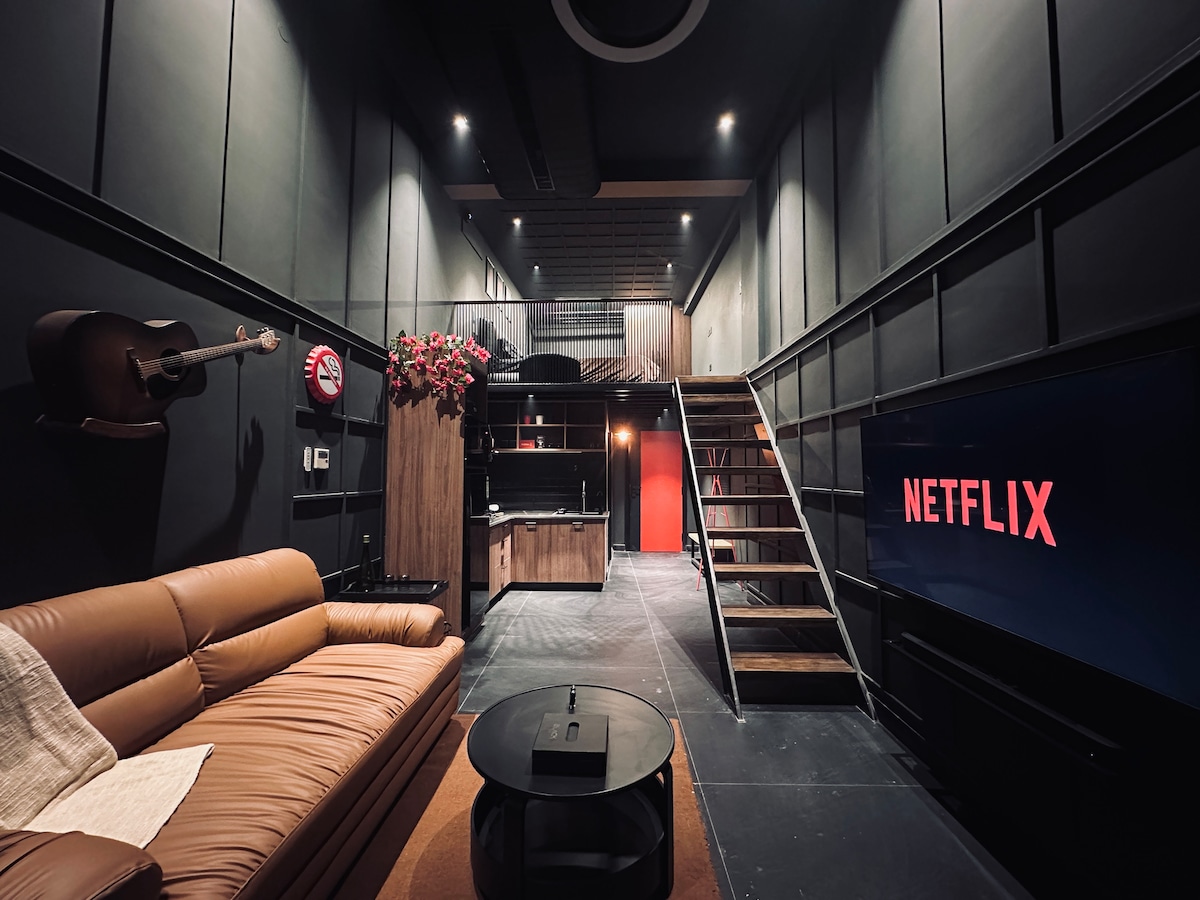 ✨ The Luxe Vault | Midnight Loft – A Cinematic Designer Stay Step into A Luxurious Black Loft, a dramatic, dark-aesthetic designer duplex created for guests who love premium living, Netflix nights, and boutique-hotel vibes. This loft combines luxury interiors, warm lighting, and carefully curated décor to deliver an unforgettable stay - perfect for couples, work-from-home stays, or urban getaways. We also a have private cinema theater at the property which is available @₹1000/Hour