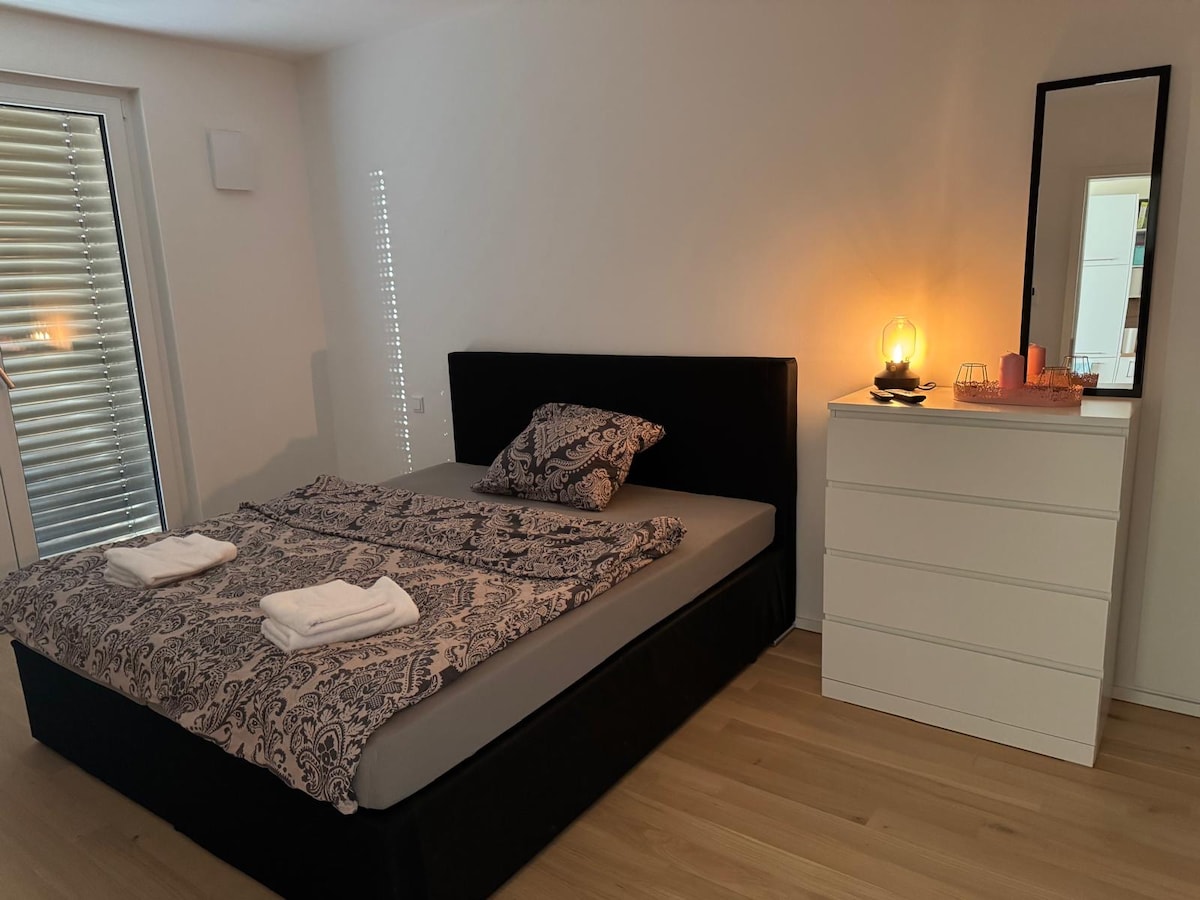 Sveikiname jus mūsų naujai renovuotame 2 kambarių bute (2025 m. rugpjūtį) su balkonu, modernia virtuve, grindiniu šildymu ir privačia skalbykle-džiovykle. Idealiai tinka prekybos mugės svečiams ir Oktoberfest lankytojams: rami vieta, tik 5 min. iki S-Bahn su tiesioginiu ryšiu su prekybos muge (10 min.) ir iki miesto centro/Oktoberfest (30 min.).