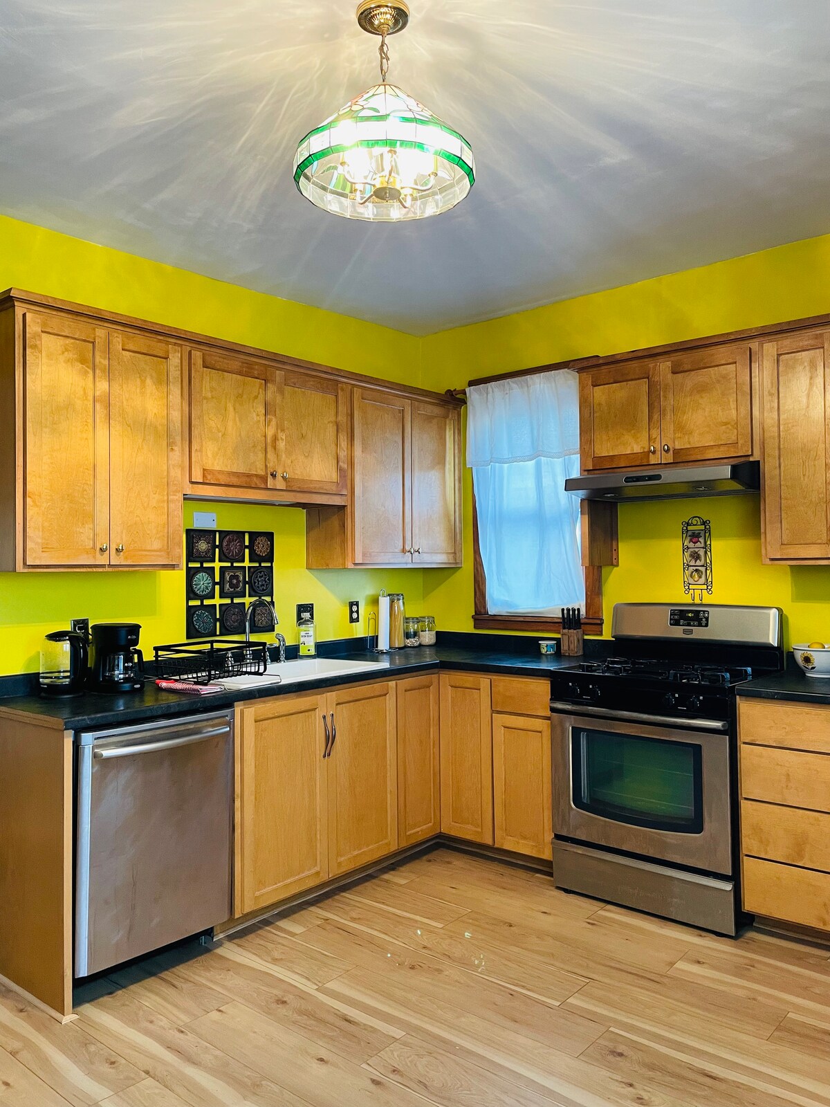 Šis 650 kv. pėdų rūsio perlas yra įsikūręs rajone, kuriame galima vaikščioti pėsčiomis. Turėsite atskirą įėjimą, VIENĄ nemokamą automobilio stovėjimo vietą kieme. Virš apartamentų yra privati tatuiruočių studija — nuo pirmadienio iki penktadienio (10.00-17.00 val.) galite išgirsti nedidelį pėsčiųjų srautą, tačiau kitu atveju jis yra nuostabiai tylus. Pastaba mūsų aukštesniems draugams: lubos yra 6 pėdų 10 colių aukščio, o kelios jaukios vietos yra 6 pėdų aukštyje. (Šunų NEGALIMA palikti vienų Airbnb būste)