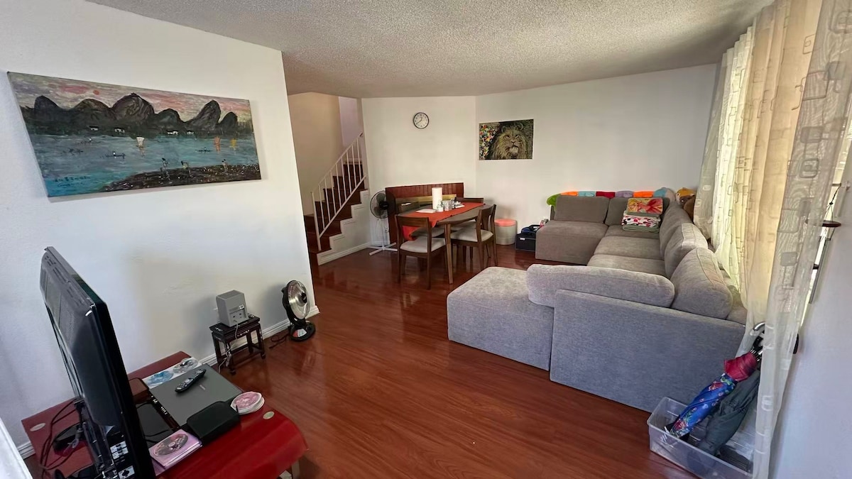 Atsipalaiduokite su visa šeima šioje ramioje vietoje apsistoti. • Privatų aptvertą kiemą • 55colių 4K televizorius su Roku + Netflix svetainėje • 50colių 4K televizorius su Roku + Netflix kiekviename miegamajame • Automobilių stovėjimo vieta 3 automobiliams • Virtuvė su atsargomis ir įrengta • Labai greitas belaidis internetas • Įrenginyje yra skalbimas/džiovinimas. • Lengva pasiekti greitkelį I-5, CA-55 arba !-405