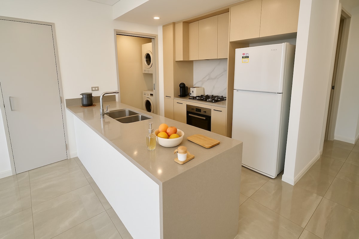 Mėgaujantis erdvia erdve ir nepriekaištingu dizainu, šis gražiai sukurtas, stilingas dviejų miegamųjų kambarys yra vos už 3 min. kelio pėsčiomis iki rytinio kaimo prekybos centro, už 13 min. kelio pėsčiomis iki Green Square traukinių stoties, Žaliosios aikštės bibliotekos, daug parkų, žaidimų aikštelių netoliese. CIT yra tik trumpas pasivaikščiojimas, tik 10 minučių kelio automobiliu/traukiniu/autobusu iki Sidnėjaus CBD. Maistas Dangus, daug azijiečių (kinų, korėjiečių, tailandiečių ir kt.), burbulinės arbatos parduotuvių! Griežtai draudžiama rengti vakarėlius ir nerūkyti!
