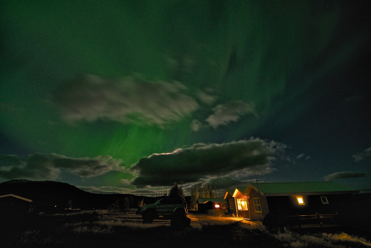 Puiki viešnagė tyrinėjant pietų Islandiją ir mėgaujantis gamta bei šiaurės pašvaiste žiemą. Nuostabi kajutė prie Hvítá upės geriausioje vietoje Auksiniame rate. Šalia Gullfoss ir Geysir ir tik 100 km iki sostinės Reikjaviko. Kajutėje gali apsistoti 2-4 asmenys. Vienas miegamasis su lovomis dviem asmenims. Svetainėje yra ištraukiama sofa dviem asmenims. Virtuvė pilnai sukrauta. Vonios kambaryje yra dušas, o skalbykloje - skalbimo mašina ir džiovyklė.