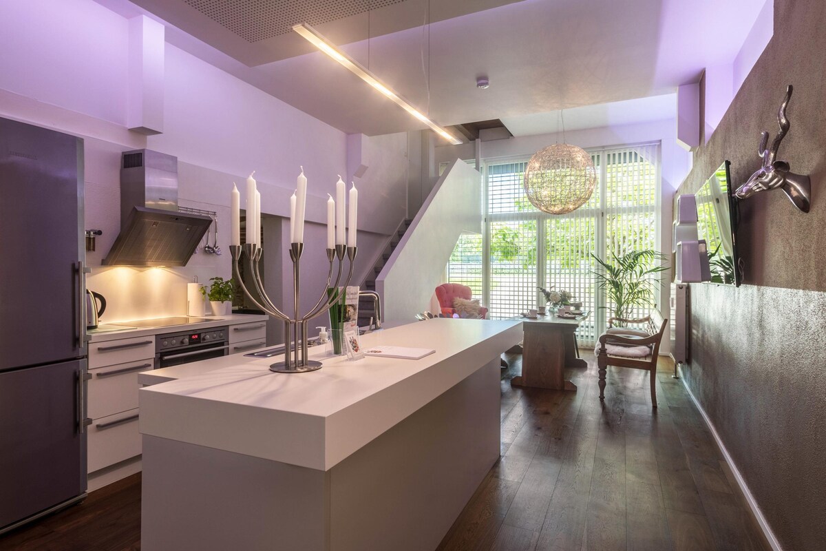 Šiuolaikinis mansarda pačioje senamiesčio širdyje. Neseniai renovuotas ir izoliuotas garsas sename pastate su liftu. Karališko dydžio spyruoklinė lova, 160 cm sofa-lova su užvalkalu, išmaniuoju televizoriumi ir pilnai įrengta virtuve. Butas puikiai tinka iki 4 suaugusiųjų, jis yra absoliučiame Ravensburgo centre - pėsčiomis pasiekiamos lankytinos vietos, restoranai ir parduotuvės. Ravensburger Spieleland automobiliu yra vos už 15 minučių kelio. Netoliese yra kelios automobilių stovėjimo aikštelės.