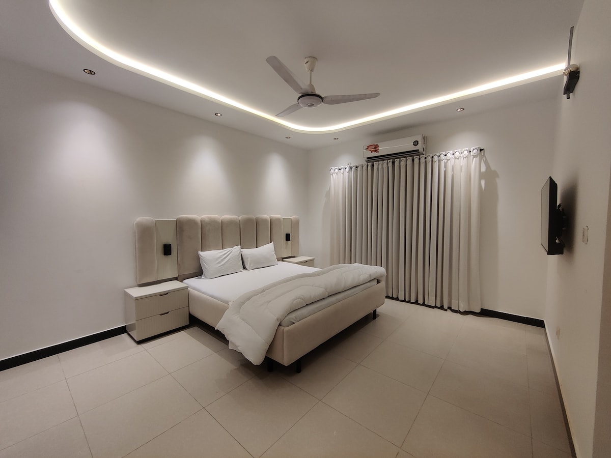 ✔ Completely independent and private ground floor portion ✔ Prices can be adjusted based on the number of bedrooms required ✔ 24/7 Security ✔ 24/7 Electricity Backup ✔ 24/7 Car with driver on-site (additional charge) ✔ Airport pick-and-drop services (additional charge) ♛ These are residential charges; separate package for events ♛ Weddings, birthdays, corporate gatherings, family dinners, professional shoots (bridal, commercial, drama) ♛ Catering, food, photography, videography, & DJ services
