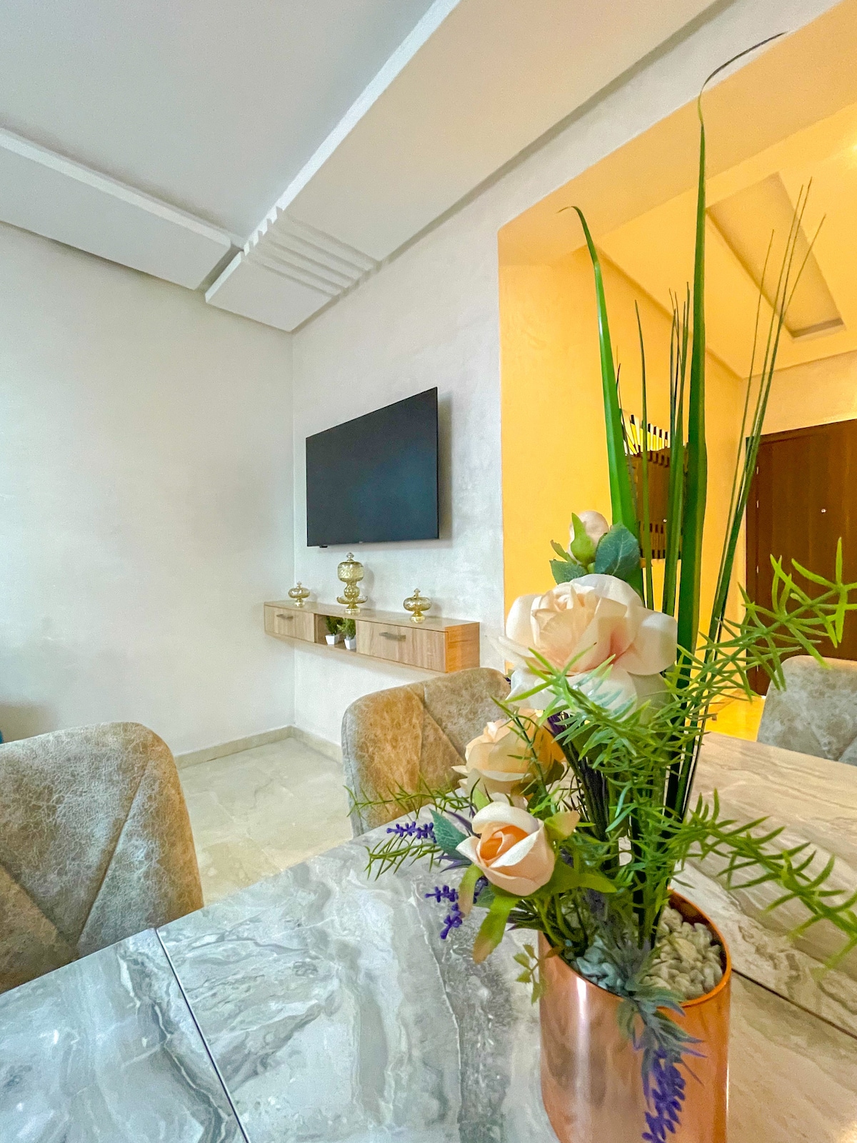 Sveiki atvykę į šį gražų butą Marakeše, Šviesi svetainė su moderniu Maroko dekoru Pilnai įrengtas virtuvės Nespresso aparatas. Didelės spartos šviesolaidinis Wi-Fi.60” Smart TV Netflix 3 oro kondicionieriai ištisus metus Raktų dėžutė savarankiškam atvykimui Vos 2 minutės nuo McDonald's Drive ir 10 minučių nuo Jemaa el-Fna Apsuptas parduotuvių, restoranų sporto salių ir prekybos centrų Lengva naudotis viešuoju transportu ir pagrindiniais keliais