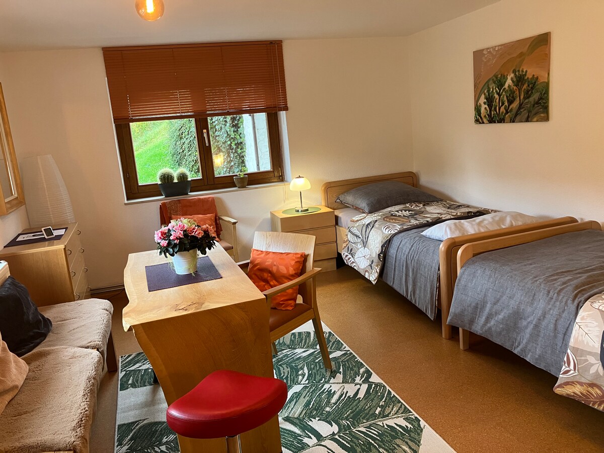 Atsipalaiduokite šioje ypatingoje ir ramioje vietoje. Mėgaukitės nuostabiu mišku ir nepakartojamu vaizdu iš balkono arba iš visų langų, labai šviesus, naujas pastatas. Visame bute grindinis šildymas ir židinys . Sofa-lova vaikams arba vienam asmeniui. Mažo kaimelio pakraštyje. Gamtai draugiškas sklypas (4500 kv.m)su galimybe grilinti ir būti lauke įvairiose vietose bei jomis naudotis. Šalia yra poilsio namai Schwäbischer Wald .