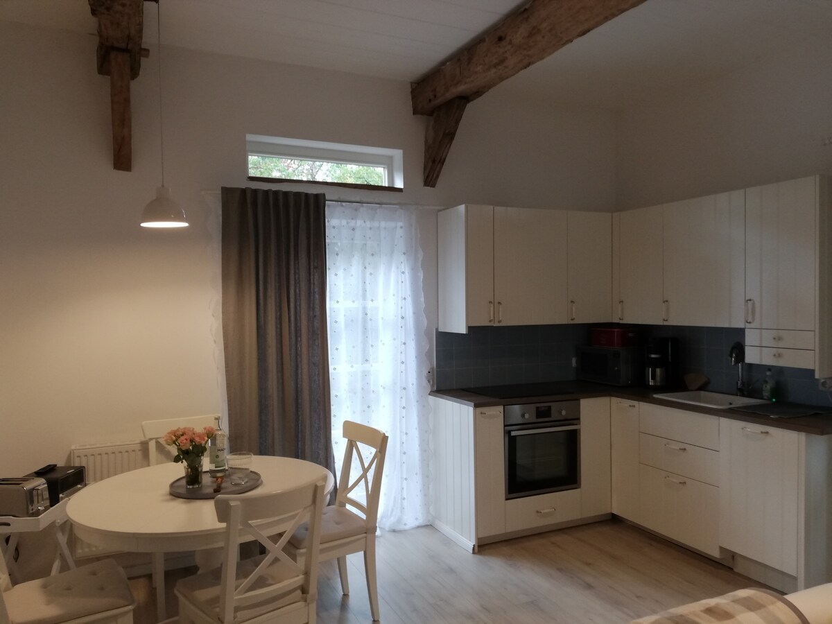 Nuoma atostogoms yra viršutiniame aukšte iki gyvenamojo namo. Tinka 4 žmonėms arba 2 suaugusiesiems ir 3 vaikams. Yra atvira virtuvė-svetainė, erdvus dvivietis miegamasis, vaikų kambarys su dviaukšte lova ir dušo kambariu. Į kainą įskaičiuota patalynė, rankšluosčiai ir Wi-Fi. Artimiausia kepykla yra už maždaug 1,3 km, o artimiausias prekybos centras - už maždaug 2 km. AZL Luhmühlen galima pasiekti per 5 minutes pėsčiomis, o Westergellerser Heide renginių zoną - per 15 minučių (2 km).
