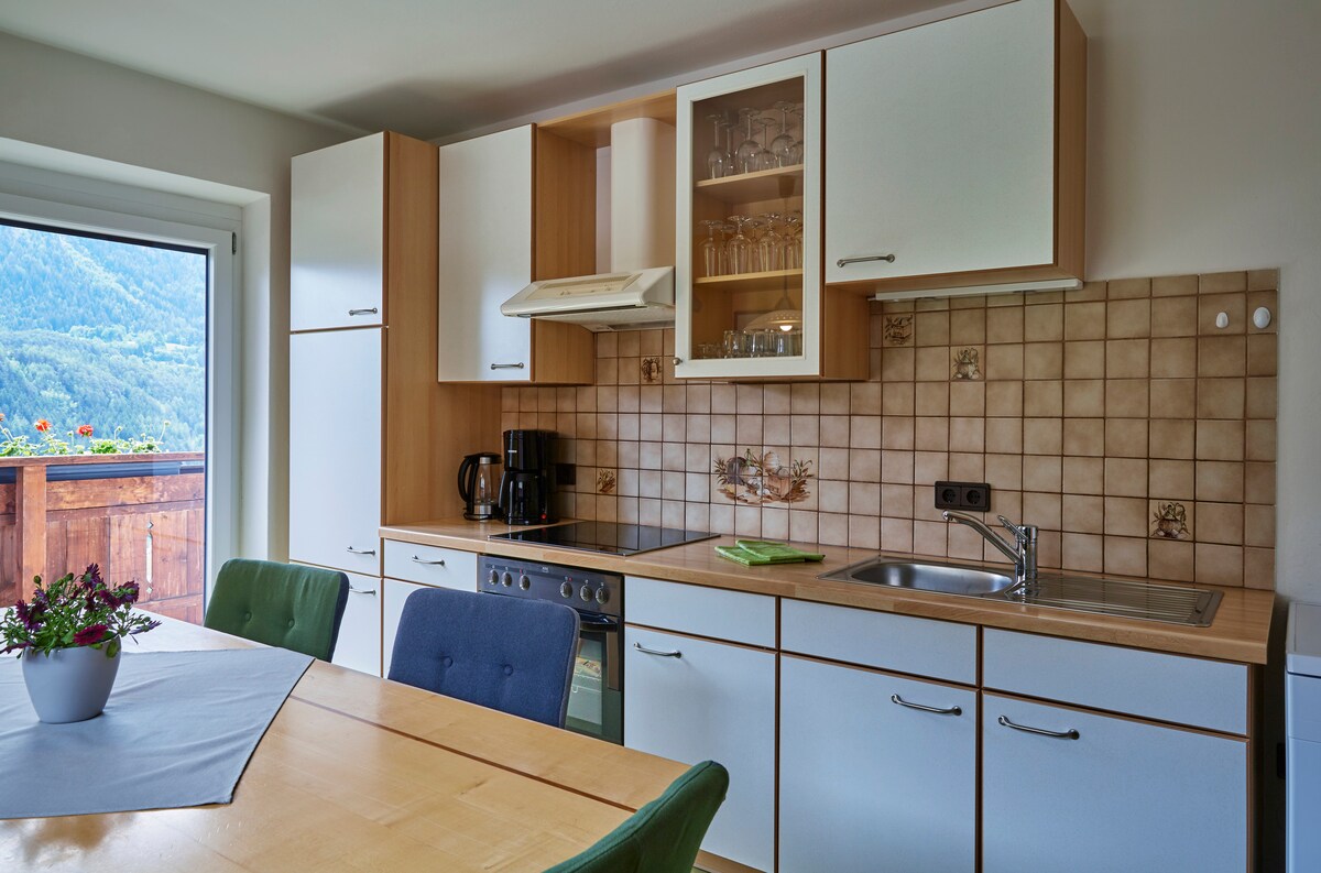 Pilnai įrengtas, didelis komfortiškas butas name su 2 papildomais apartamentais; apytiksliai 157 m2 8-12 asmenims: Svarbiausi dalykai: 4 miegamieji, 2 vonios kambariai, pilnai įrengta virtuvė, tipiškas Tirolio pušies salonas su plytelėmis viryklė ir erdvus balkonas, netoli Area47