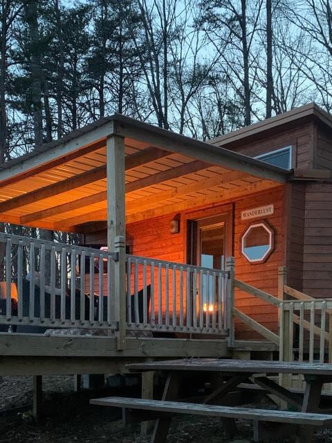 Tai unikalus, naujai pastatytas namelis medyje (‘23) ant 10 miškingų akrų netoli Watts Bar ežero. Netoliese yra prieplaukos, restoranai, žygių takai, kriokliai, o už kelių minučių kelio automobiliu rasite sraunių ir Gatlinburgą! Mėgaukitės ramybe ir ramybe savo privačioje terasoje su vaizdu į mažą Holly giraitę, vešlų mišką ir sezoninį upelį! Laužavietė su poilsio zona, lauko virtuve ir kepsnine. Patogi erdvė viršuje su karališko dydžio lova su „Memory“ putplasčiu, dviviete sofa-lova, pilna vonia, židiniu ir mini virtuve. Sezoninės baidarės. Jokių augintinių ar vaikų iki 12 metų!