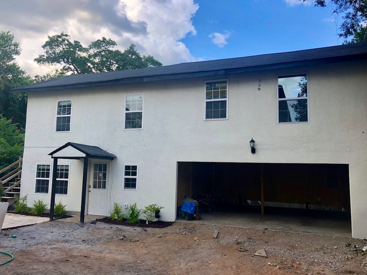 This charming carriage house is 3 miles from the Augusta National, a block from local coffee shop/restaurants, and in a safe/quiet area of town. The entire upper floor has been custom renovated to make your stay restful and enjoyable. One garage parking spot is also included! The cottage boasts a queen bed and pullout couch to accommodate 4 guests, washer/dryer, fully functional kitchen, and luxury bath. Walk to local favorites such as the Partridge Inn, Becks, Soul City Pizza, and Buona Cafe.