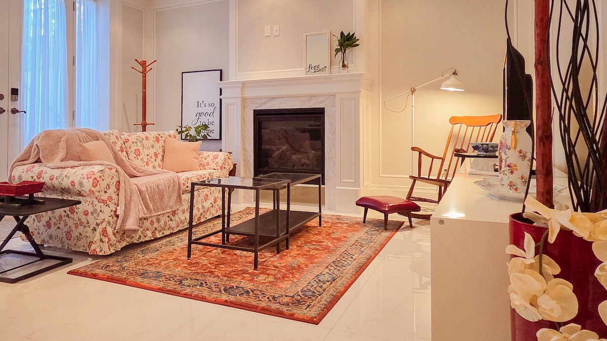 Sveiki atvykę į mūsų modernų visiškai naują 2BR, 2BA rūsį Ričmondo kalvoje! Puikiai tinka šeimoms ar grupėms, jame yra stilinga gyvenamoji erdvė, skalbimo zona ir gerai įrengta virtuvėlė. Pagrindiniame miegamajame yra židinys ir vonios kambarys, o abiejuose miegamuosiuose yra karališko dydžio lovos ir daug vietos daiktams laikyti. Pramogose yra televizorius ir Wi-Fi-Netflix bei Amazon Prime, prabangiame rajone, vos už 5 minučių kelio pėsčiomis iki Yonge St ir autobusų stoties, kad būtų lengva pasiekti . Patirkite komfortą ir patogumą