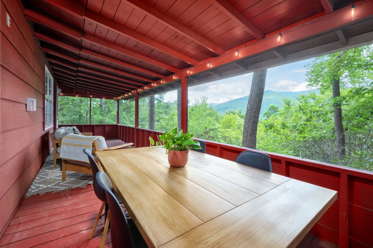 Unwind under the stars on the yoga deck while the creek gurgles by, or under the covered porch in the hot tub. Enjoy mountain views, MCM style, and nature, minutes from hiking, restaurants, shopping, breweries, and Asheville. The cabin is fully updated and offers every amenity: gas fireplace, a fire pit, picnic area, hot tub and creek access. Nestled in a quiet neighborhood on 1/2 an acre, 1 mile to Black Mountain, 5 miles to Montreat, 15 min. to downtown Asheville.