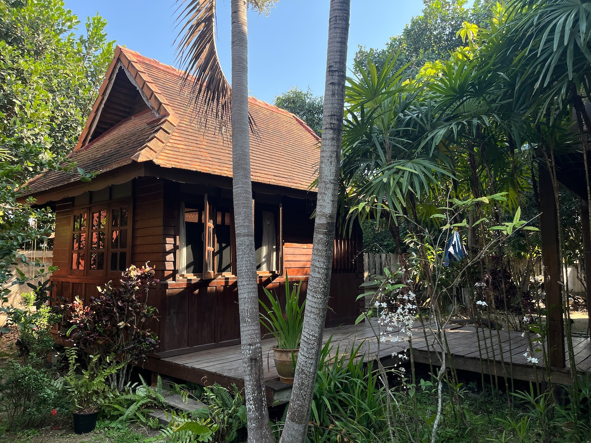Puikiai tinka mažai šeimai su mažu vaiku. Arba pora, pirmenybę teikite ramiai ir ramiai gamtai. Namo statyba iš senos/perdirbtos medienos ir bambuko gyvenamajame rajone su kraštovaizdžio sodu ir pilnai įrengta virtuve bei vakarienės zona Tinka Svečiams, ieškantiems ramybės ir ramybės, pabėgti nuo įtempto gyvenimo mes esame vietiniame kaime, o ne miesto centre Griebkite yra geras aptarnavimas srityje į senamiestį arba Nimmanhemin