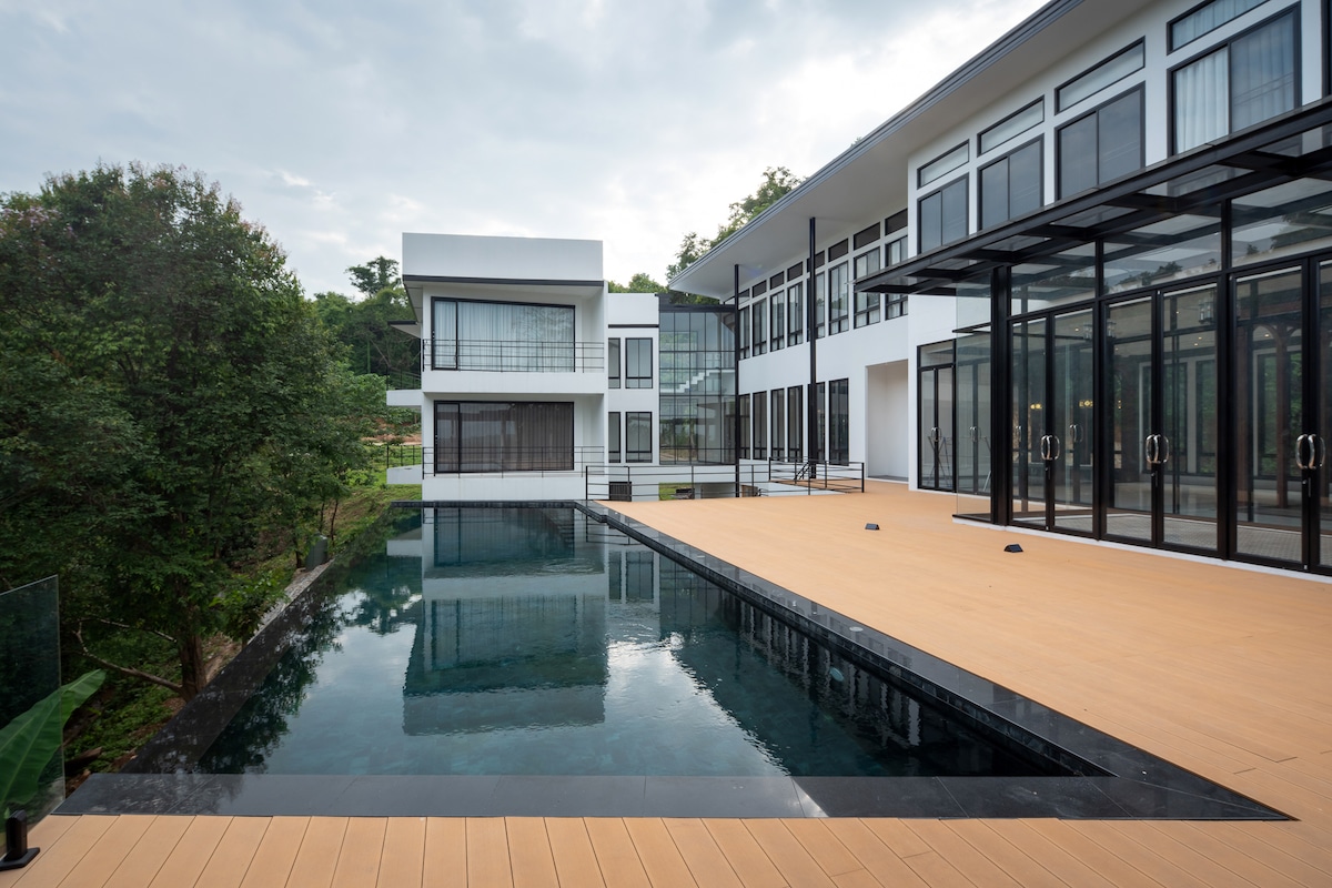 Atjunkite ir atgaukite jėgas šiuose ramiuose namuose ramiame name Mae Rim mieste, Čiangmajuje. Idealiai tinka šeimoms ar mažoms grupėms, šioje erdvioje viešnagėje yra visi patogumai, pvz., 12 m sūraus vandens baseinas, vaikų baseinas, sporto salė, bendradarbystės poilsio erdvė ir dar daugiau, vos už 20 minučių kelio nuo Nimmano ir 35 minučių kelio nuo Čiangmajaus tarptautinio oro uosto.