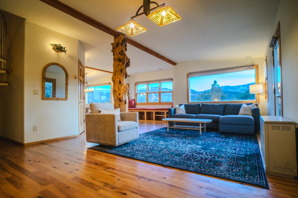 Šie namai yra netoli kalnų, slidinėjimo, pasivažinėjimo rogėmis, pasivaikščiojimo sniegu, žvejybos, žygių pėsčiomis, kalnų dviračių, baidarių, plaukimo plaustais - viskas, ko tikitės iš Kolorado. Vieta prie upės, 4 BR su 2 pagrindiniais apartamentais, erdvūs 2600 kv. pėdų, nuostabūs vaizdai, jaukus židinys, aukštos lubos, erdvi ir gerai įrengta virtuvė, Wi-Fi, daug elektros lizdų... viskas vos už kelių žingsnių nuo Rio Grande miško! Du pagrindiniai apartamentai puikiai tinka dviem šeimoms (iki 14 žmonių gali patogiai miegoti).