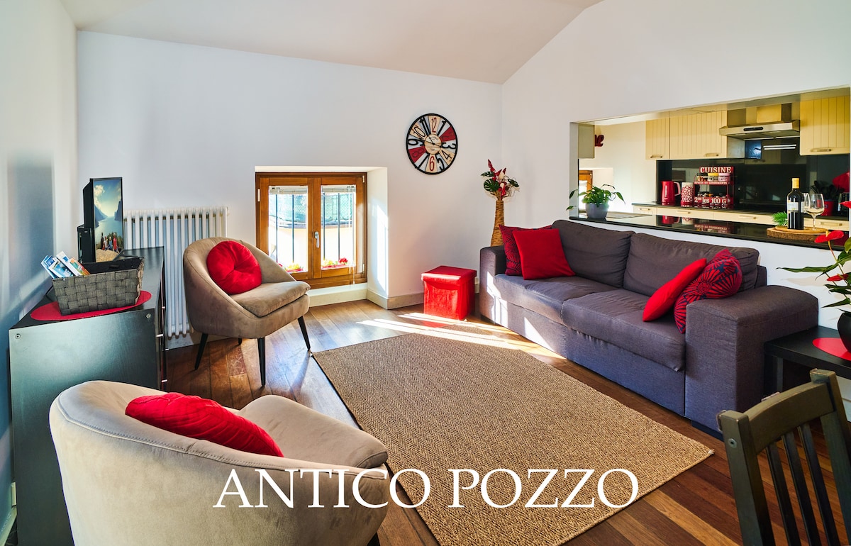 Gražus dviejų kambarių butas 50 kvadratinių metrų, trečiame istorinio komplekso aukšte Riva del Garda centre, vos už 150 metrų nuo ežero ir už 700 metrų nuo paplūdimio. Įsikūręs vienoje iš būdingiausių istorinio centro gatvių, netoli bažnyčios. Netoliese yra kepykla, barai, restoranai, ledų salonai, parduotuvės, prekybos centrai, vaistinė ir daugelis kitų komercinių veiklų. Puikiai tinka poroms, sportininkams, draugams ar visiems, norintiems mėgautis miesto širdimi.