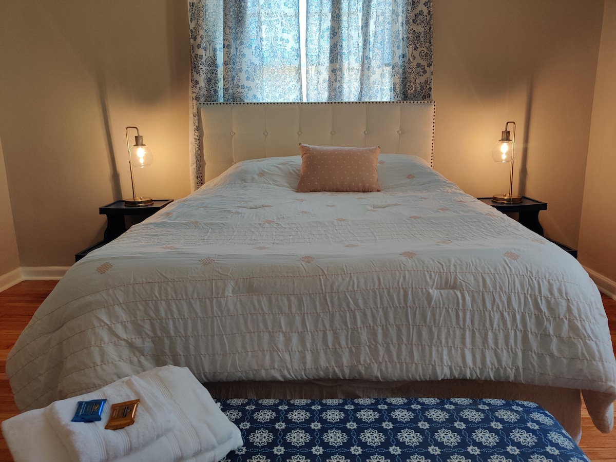 Pavargote išnešti šiukšles ir nuimti lovą daugumoje „Airbnbs“? Mūsų ramus ir jaukus apartamentai yra įsikūrę istoriniame Springfildo rajone, šalia Džeksonvilio centro. Šiame bute yra dvigulė lova, dvigulė ištraukiama sofa-lova ir nuostabus La-Z-Boy atlošas, puikiai tinkantis miegoti. Vonios kambarys atnaujintas, su puikiu vandens slėgiu. Ir priekinė veranda skirta tik mūsų svečiams. Yra „Keurig“, taip pat šaldytuvas ir mikrobangų krosnelė, bet nėra virtuvės.