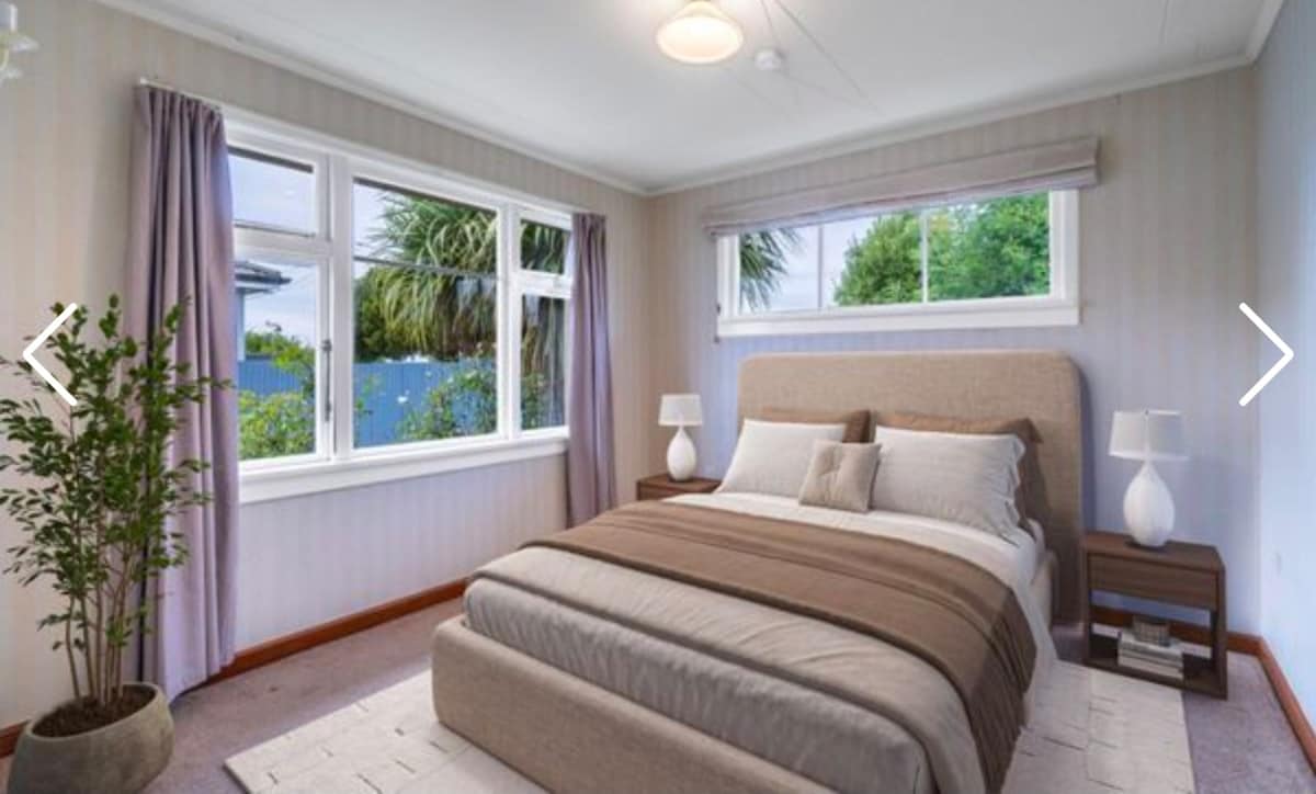 Single story bungalow in the heart of Windsor. 5 minutes walk to New World Supermarket and Windsor Shopping Centre, with restaurants, subway, fish'n'chips, wine shop. gift shops and more. Free Fibre WiFi. Fully equipped entertainers kitchen. 2 heat pumps and gas fireplace in lounge. Sky TV. Off street parking. 8 minutes drive to City Centre. High Chair and Portacot avaliable free of charge on request.