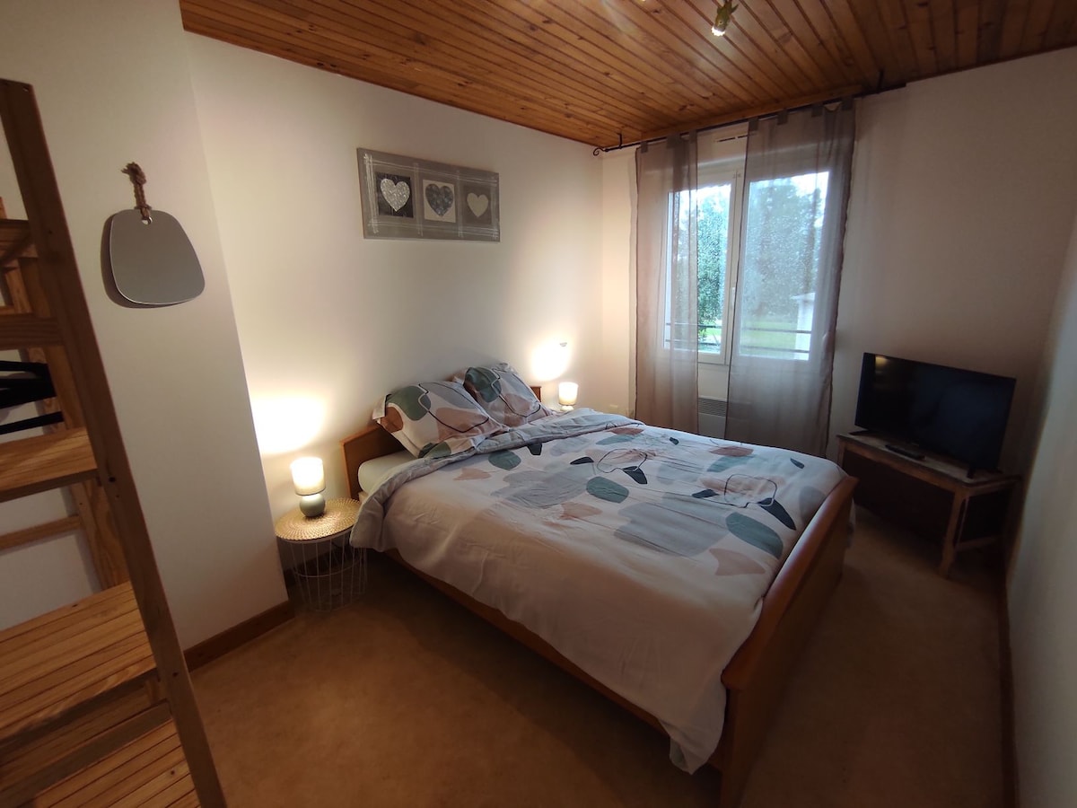Žavingas mažas namas, esantis pačioje „Cousances-les-forges“ kaimo širdyje, lengvai pasiekiamas N4. Namuose yra miegamasis (lova 160x200) ir sofa-lova svetainėje. Privati lauko erdvė su terasa . Netoli visų patogumų (duona/proxi/vaistinė už 100 m). Galimas savarankiškas atvykimas ir vėlyvas atvykimas. Įskaičiuota patalynė ir dušo patalynė. Leidžiamas tik 🐶 1 augintinis, jei yra mažas dydis ir išankstinis prašymas ( ne kambaryje).