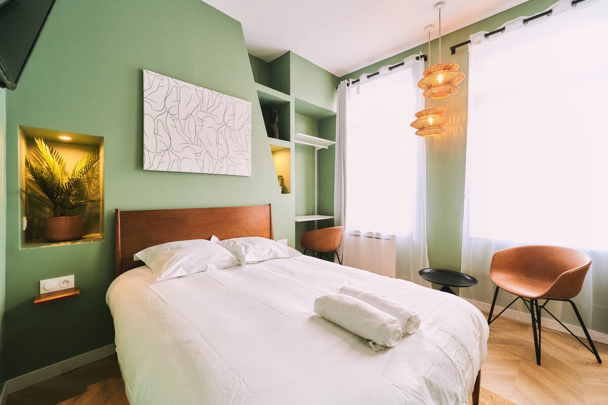 Sveiki atvykę į mūsų šviesų ir jaukų 70 m² lizdą, idealiu atveju esantį pačioje Amjeno širdyje — vos už 5 minučių kelio pėsčiomis nuo katedros ir už 10 minučių kelio nuo traukinių stoties. Bute dera žavesys ir komfortas: atviros plytų sienos, kruopščiai atrinkti baldai, šiltas dekoras ir modernūs patogumai. Erdviame ir šviesiame pagrindiniame kambaryje yra poilsio zona su sofa-lova (su tikru čiužiniu) ir miegamoji zona su patogia dvigule lova.