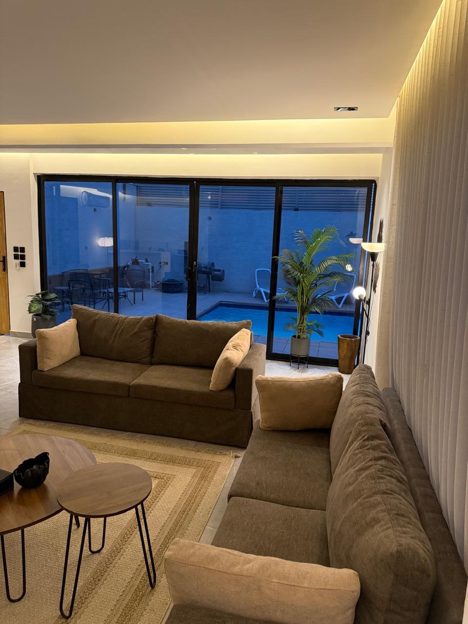Prabangaus poilsio namelio nuoma Al Ramalyje Mėgaukitės unikalia atmosfera elegantiškame poilsio namelyje, kuris siūlo privatumą ir komfortą, puikiai tinkantį šeimoms ir susibūrimams. Ypatybės: Poilsio kambarys 9 asmenims Ausinės ir Wi-Fi Mažas valgymo stalas Privatus baseinas Sesijos lauke Jaukūs miegamieji Virtuvė su įranga Privati vieta pastatyti automobilį