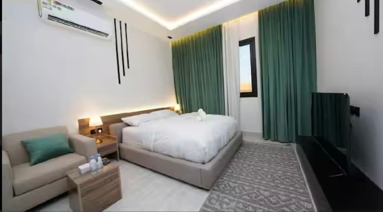 Studija yra mišinyje į rytus nuo Rijado, netoli King Khalid tarptautinio oro uosto, taip pat netoli turistinių vietų ir vyriausybės departamentų, suprojektuotų patogiomis spalvomis ir apstatyta gražiais ir gražiais baldais, su nemokamu ekranu, nemokamu internetu, atpalaiduojančia kėde ir vonios kambariu su visais priedais, studiją supa nemokamos kameros ir nemokama automobilių stovėjimo aikštelė, gaivūs praėjimai ir pėsčiųjų takų valymo paslaugos. Laikrodis. Galimos paslaugos: Nemokama lygintuvo poilsio erdvė Ypatinga nuolaida skalbiniams yra 20% visoms paslaugoms, kuriomis gali naudotis mano brangūs klientai. * PlayStation galima įsigyti pagal pageidavimą.