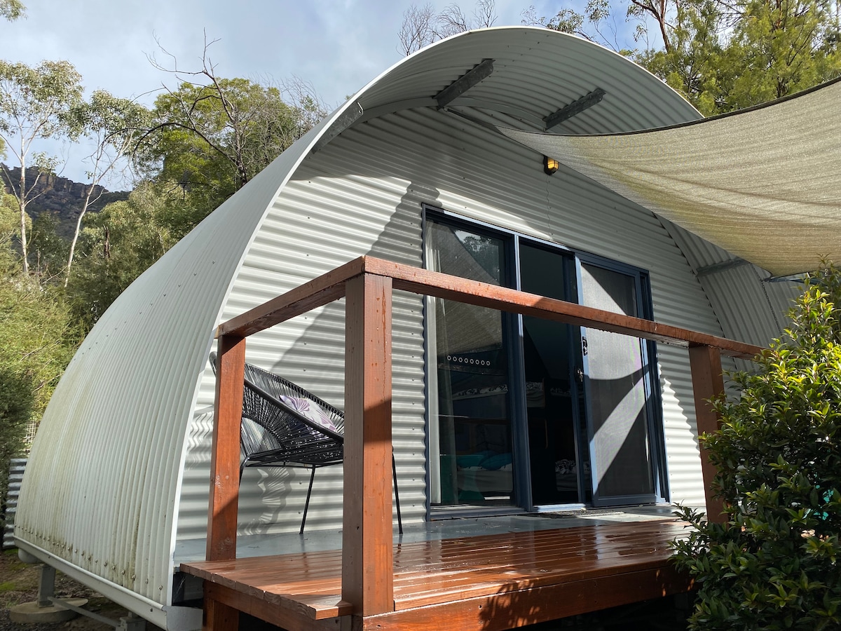 Atsibuskite su nuostabiais kalnų vaizdais ir gausia laukine gamta už jūsų durų šiame specialiame dizainerio ekologiškame mikroname. Galite pasimėgauti žvaigždėmis nuostabioje lauko vonioje. Mėgaukitės šio būsto ramybe ir privatumu būdami tik už 8 km nuo Halls Gap kavinių ir restoranų. Šioje romantiškoje stilingoje erdvėje galėsite atsijungti ir atsipalaiduoti neprarandant komforto.