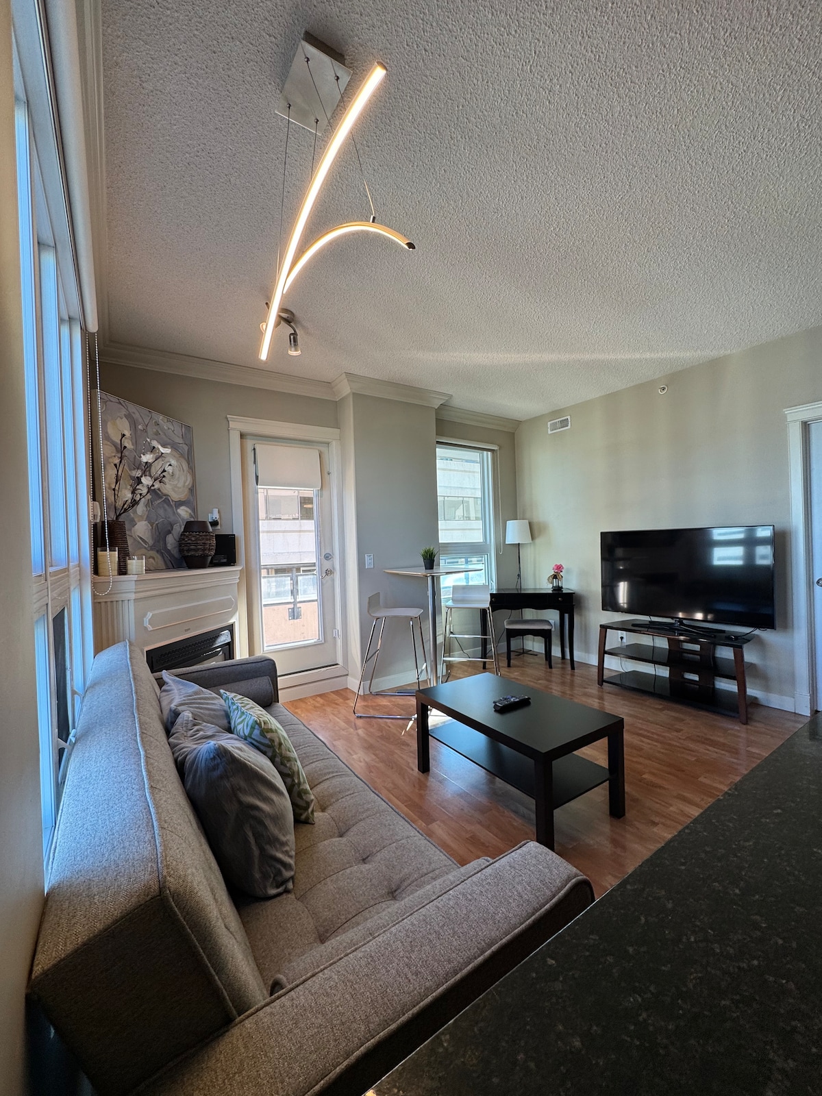 Pilnai įrengta virtuvė ir jaukūs baldai puikiai tinka ilgesnėms viešnagėms. Keliaudami naudokite baseiną ir sporto salę, kad išlaikytumėte pratybų rutiną. Mėgaukitės lengva prieiga prie visko - nuo šios puikiai įrengtos namų bazės. Iš balkono atsiveria stulbinantis miesto panoramos vaizdas. Vos keli žingsniai nuo kai kurių geriausių miesto restoranų, kavinių ir pramogų vietų, pėsčiomis iki „Rogers Place“, „MacEwan University“ ir greito tranzito iki Albertos universiteto.