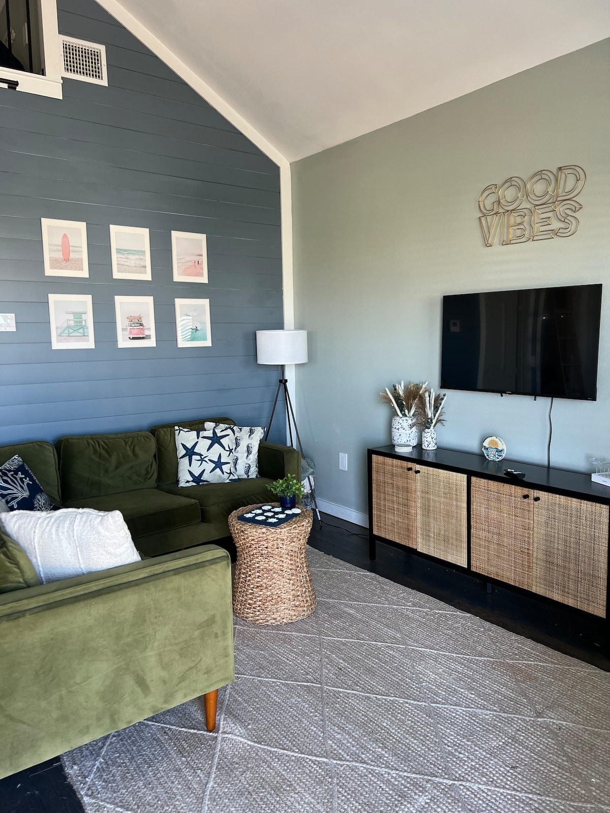 Paplūdimys su panoraminiu vaizdu į vandenyną, namų kino teatru, sūkurine vonia ir laužaviete. Iš abiejų miegamųjų atsiveria vaizdas į paplūdimį su karališkomis lovomis, 65col. televizoriais ir privačiais vonios kambariais. Svetainėje yra 85colių televizorius, erdvinis garsas ir didelės spartos internetas filmams/žaidimams. Airbnb suprojektuotas kaip 2 aukštų dvivietis kambarys su atskirais įėjimais, terasomis, oro kondicionieriumi ir garso izoliacija, yra 1000 kv. pėdų 1-ame aukšte. Antras aukštas skirtas savininkams, kurie dažnai keliauja ir niekada nėra nuomojami. Jei yra, jie paprastai yra nematomi. Galima įkrauti elektromobilį.