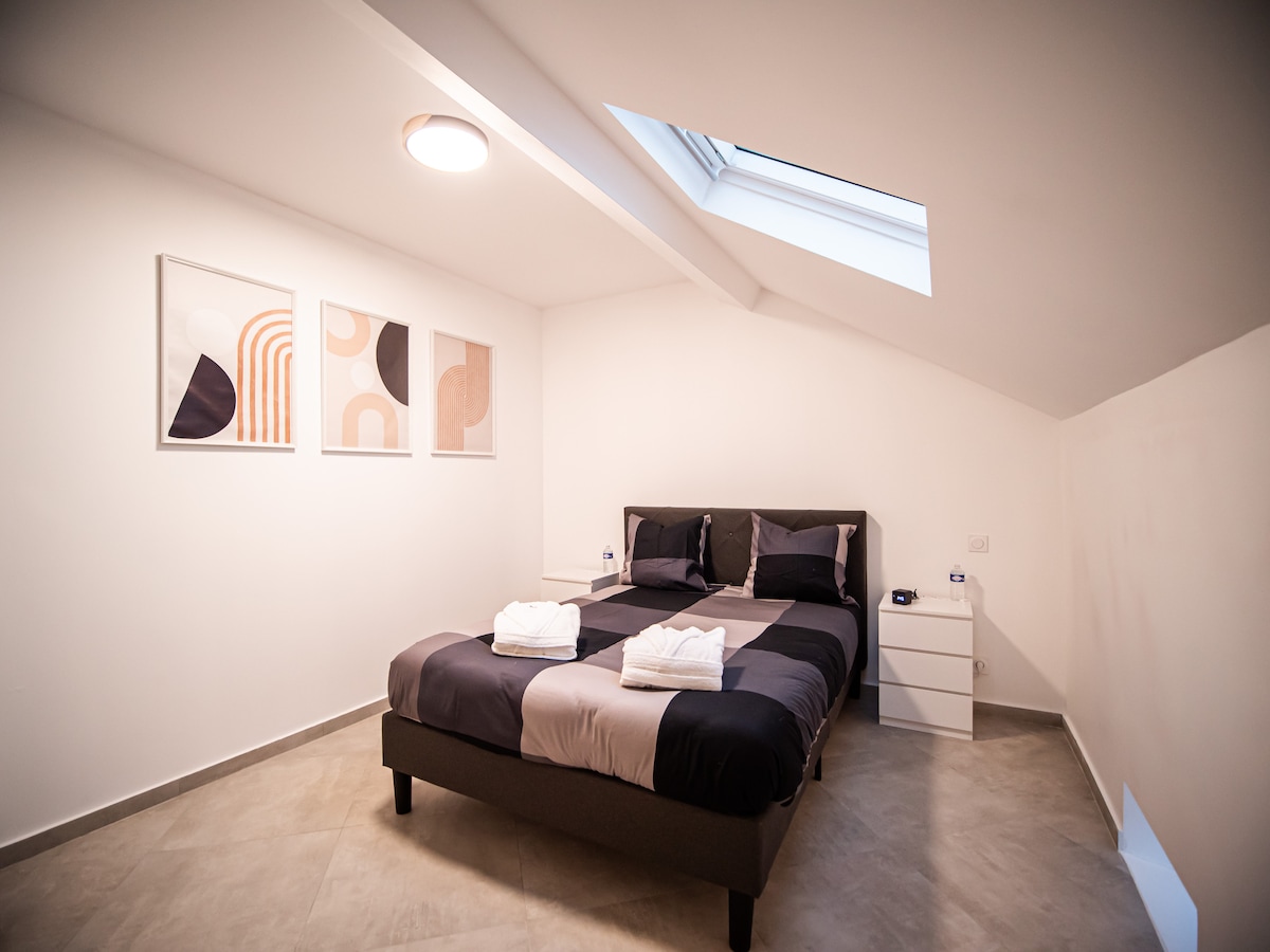 Logement à deux pas du centre Thermal et Touristique d'Amnéville-les-Thermes (zoo, piste de ski indoor, thermes, bowling, piscine, restaurants, bars, boîte de nuit...), de Thionville et Metz. Vous apprécierez cet appartement cosy pour sa situation, son confort (couchage confortable 160x200cm + canapé convertible 120×200cm, douche spacieuse, cuisine équipée, lave-linge séchant, grande terrasse, télévision, WIFI), sa luminosité, son calme. Parfait pour les familles, couples et voyageurs en solo